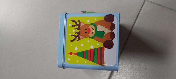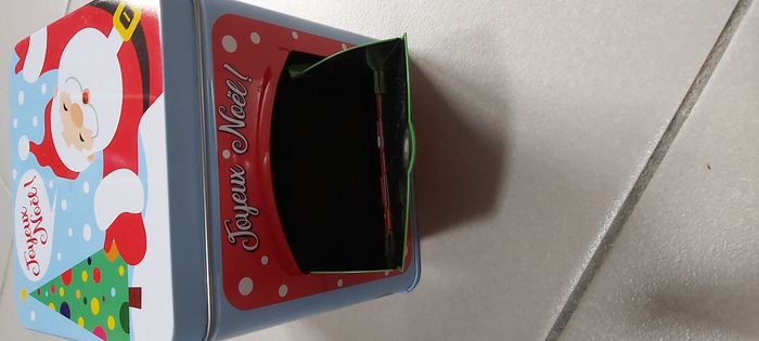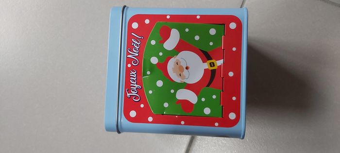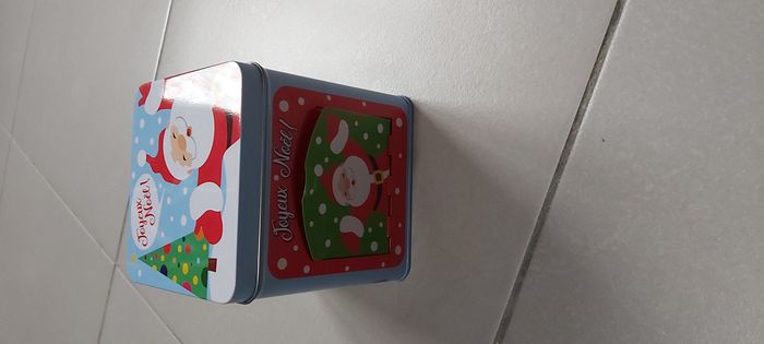.Boîte métal Joyeux Noël S'ouvre par le haut S'ouvre également sur le côté au niveau du père Noël ( un côté légèrement dévié mais ne gêne pas à l'ouverture ni à la fermeture) dimension 12cm x 11.5 cm #carineddideco
