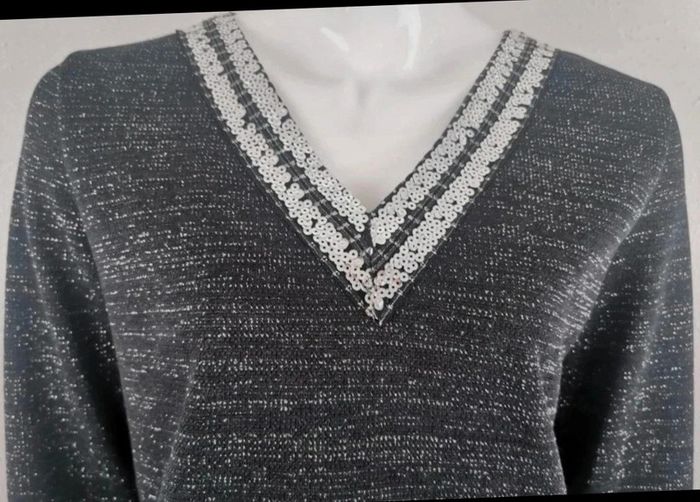 Pull marque m&g monogram taille M 94% polyester 4% fil argent 2% élasthanne neuf avec étiquette joli pull brillant