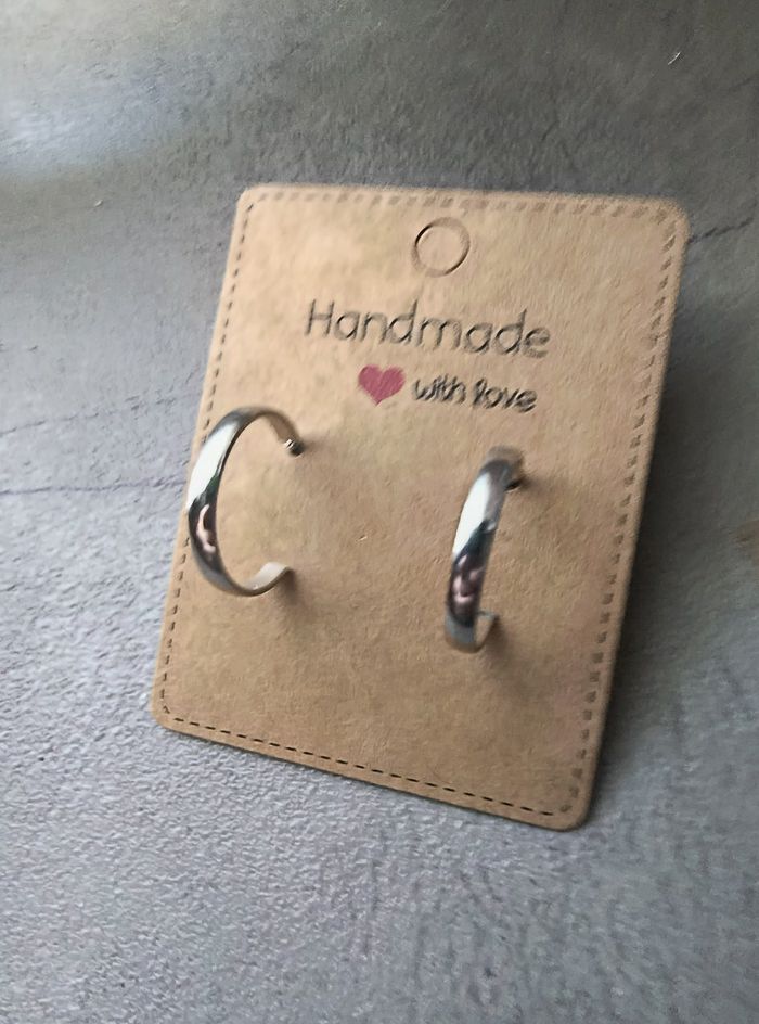 Boucle d'oreille semi-cercle En acier Neuf Tige derrière avec poussoir en plastique transparent