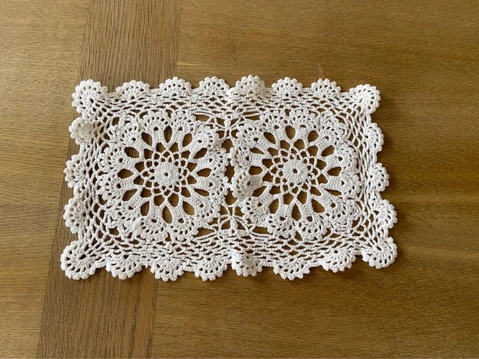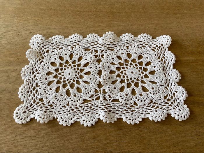 Napperon rectangulaire ancien en dentelle de crochet blanc - photo numéro 1