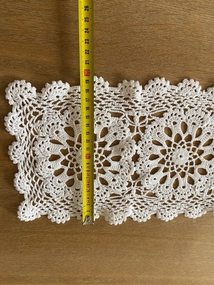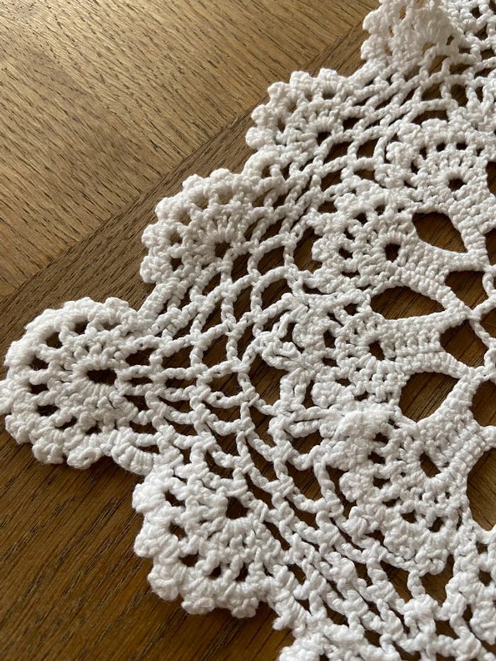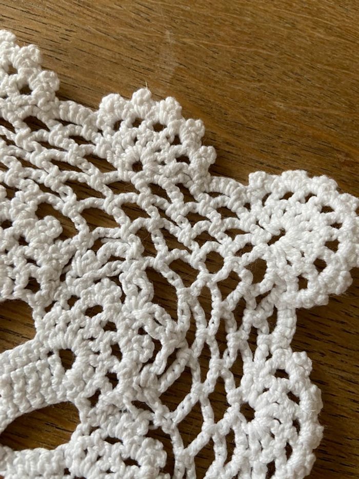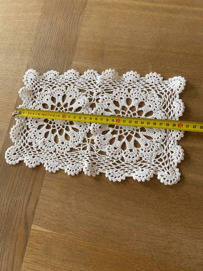 Napperon rectangulaire ancien en dentelle de crochet blanc - photo numéro 7
