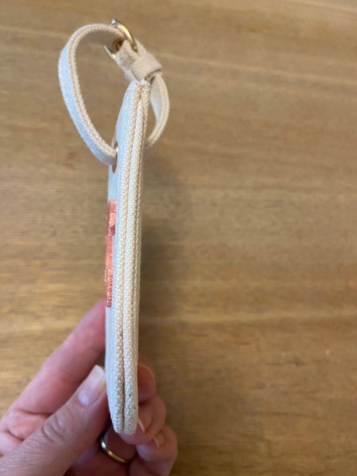 Neuve, étiquette bagages en toile écrue lettre floquée rouge C.