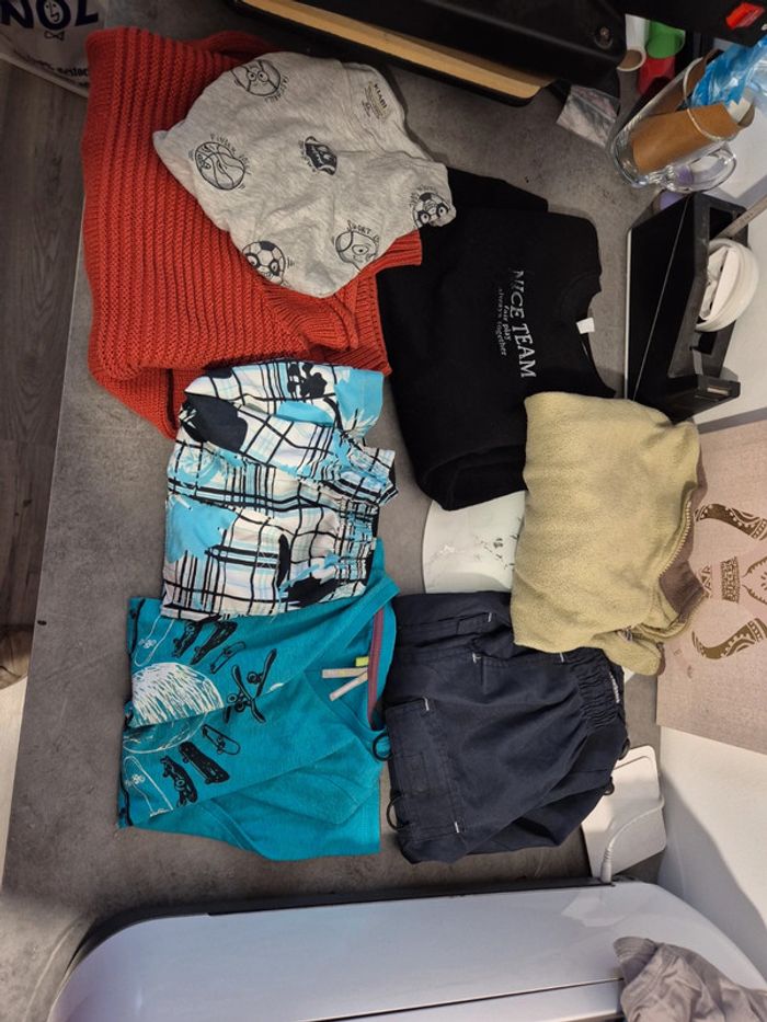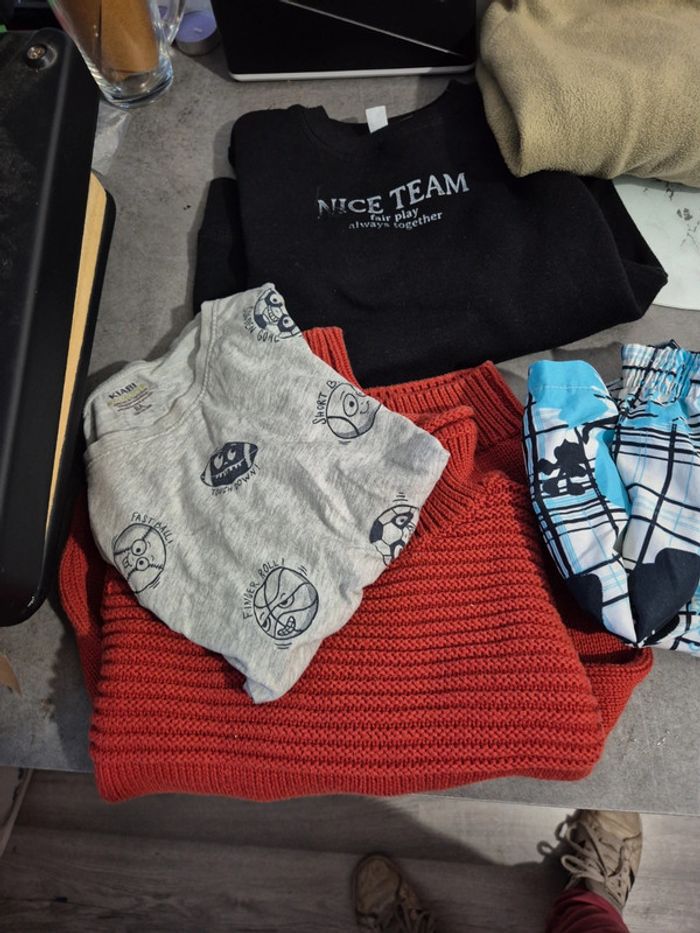 Attention mélange de taille. 1 pull 4-5 ans, 2 pull 5-6 ans, 1 t-shirt 5 ans, 1 maillot de bain 5 ans, 1 pantacourt 5 ans et 1 T-shirt 8 ans