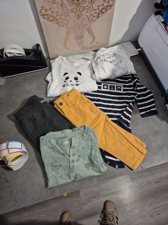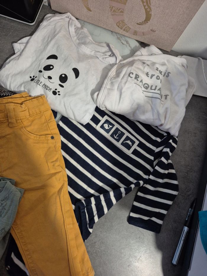 Lots de vêtements garçon 12 mois. 2 pantalon, 3 body manche longue, 1 t-shirt manche longue. Privilégier shop2shop pour un envoie plus rapide. Lots 3 garçon