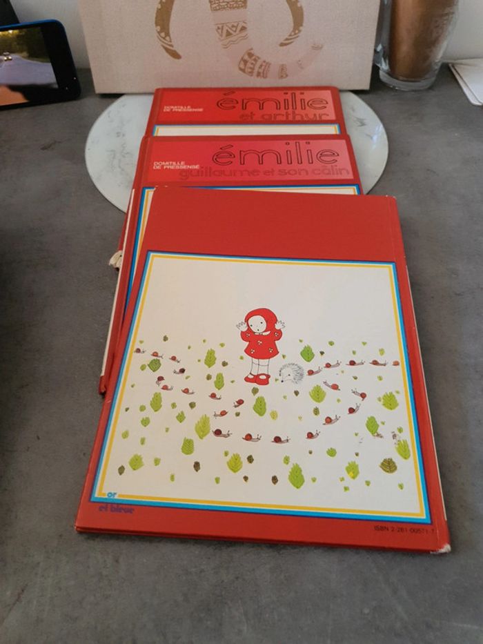 Ancien livre Émilie Émilie et Arthur Émilie Guillaume et son câlin Je compte avec Émilie Le gâteau d'Émilie Soit 4 livre légèrement abimer