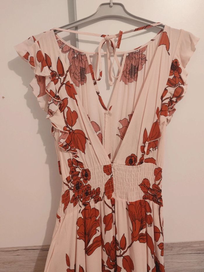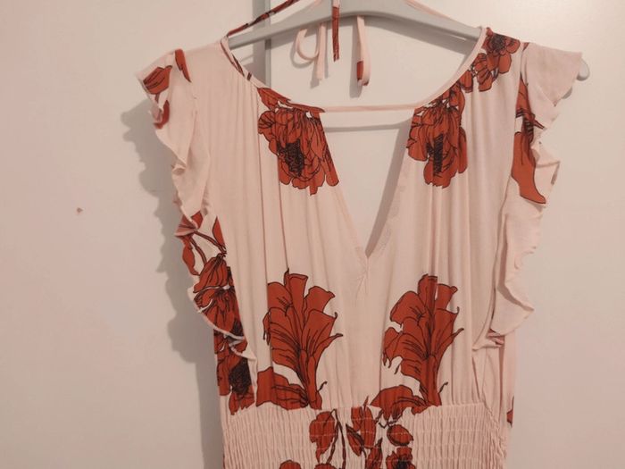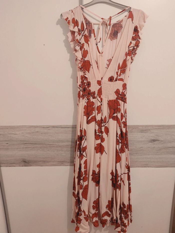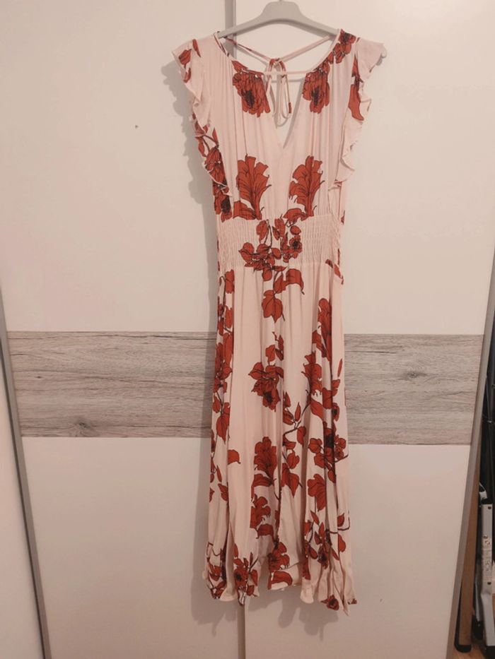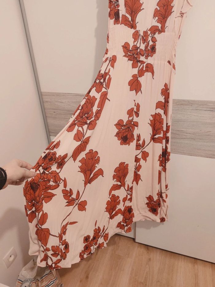 Robe longue légère Fermeture dans le dos Doublée Acheté pour un mariage mais du a une prise de poids jamais portée Taille S mais taille un peu grand, correspond pour un M