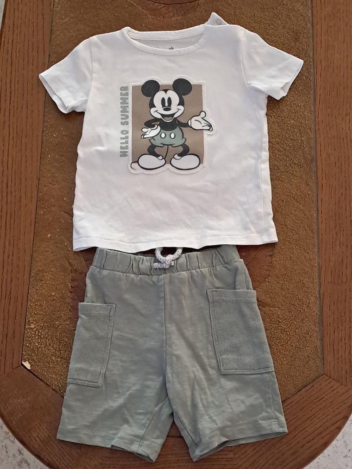 Ensemble mickey Tee-shirt MC blanc avec Mickey Voi photo tache minime entourée Short