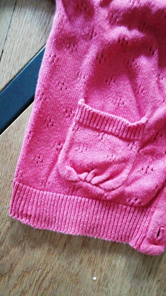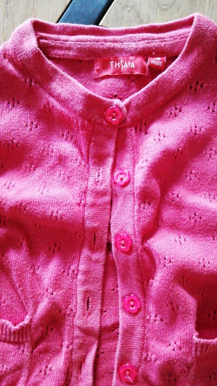 12 mois, gilet avec boutons en forme de fleurs, deux petites poches devant #laptiote8812moisfille