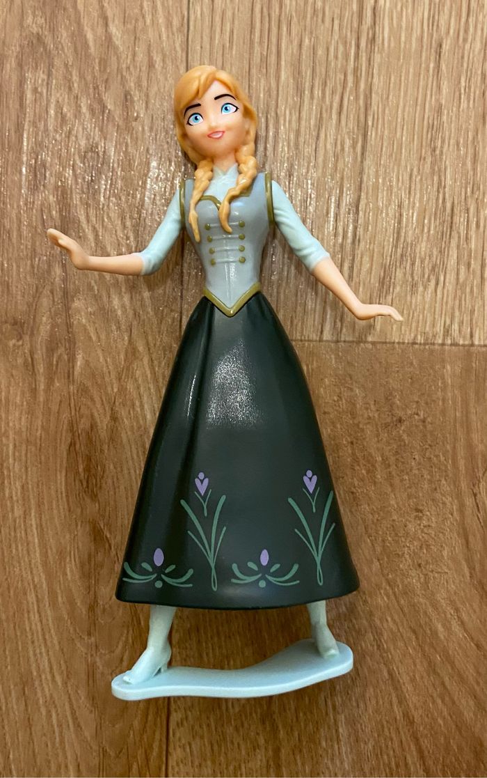 Voici la figurine d'Anna, le personnage principal du film Frozen. Cette figurine en plastique représente Anna avec sa robe verte et ses tresses blondes caractéristiques. Elle mesure 13 cm de hauteur et est en excellent état, n'ayant été que peu utilisée. C'est un beau jouet pour les fans de la franchise Disney Frozen qui apprécieront son niveau de détail et sa qualité de fabrication. N'hésitez pas à me contacter si vous avez d'autres questions ! - Figurine Anna de Frozen - Personnage principal du film - 13 cm de hauteur - Excellent état, peu utilisée - Idéal pour les fans de Disney Frozen