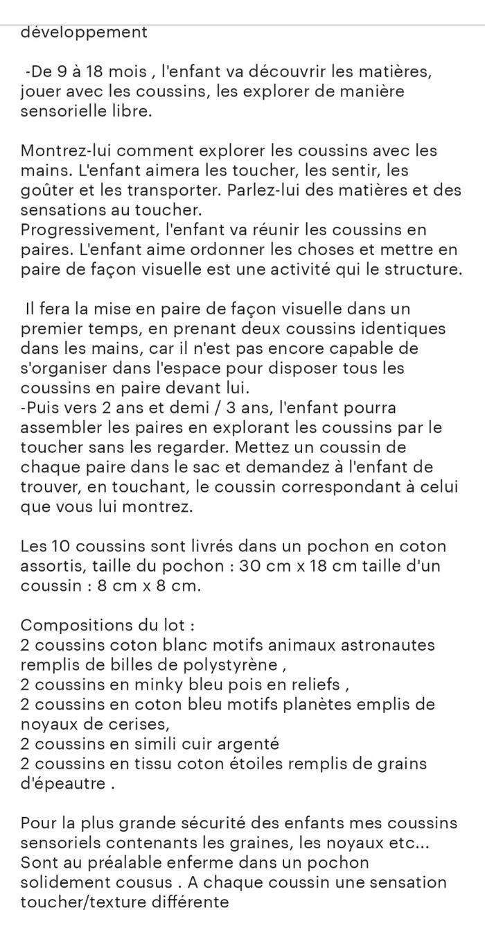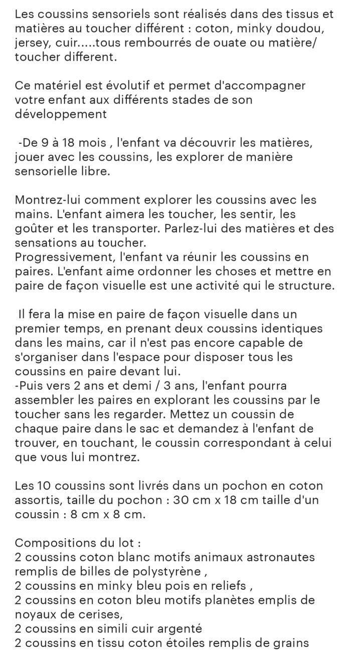 Lot 10 coussins sensoriels type Montessori