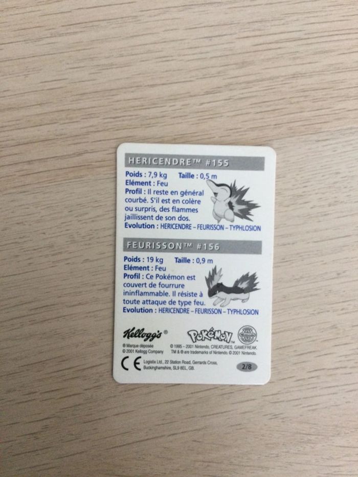 Carte Pokémon animée hologramme trois dimensions kellogg’s collection année 2001. Hericendre 155 feurisson 156.