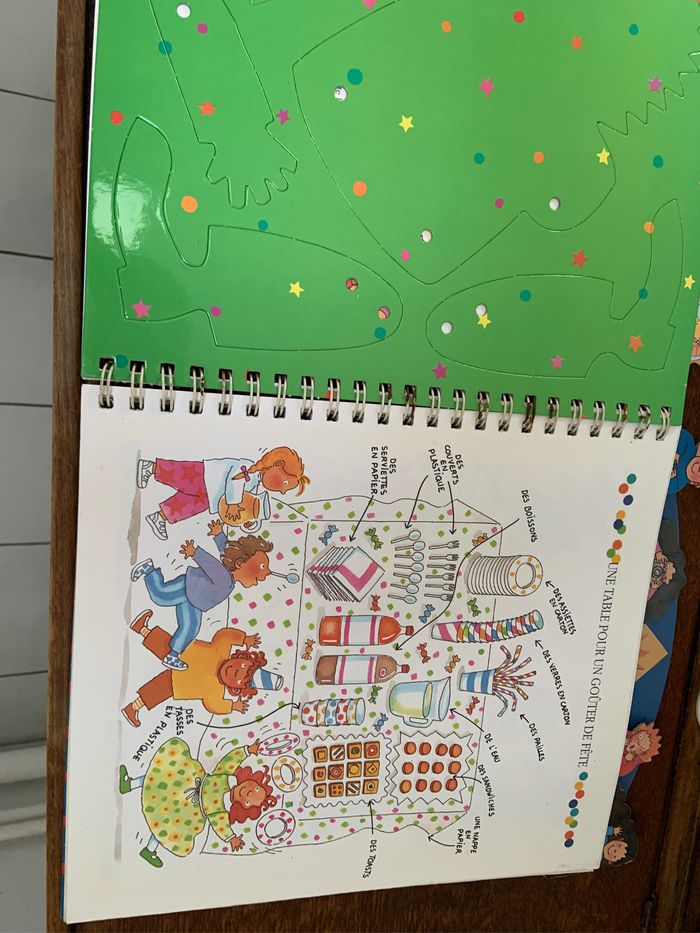 Livre interactif avec de nombreux jeux les pièces sont prédécoupées des étiquettes autocollantes portant les verres un pantin à monter un petit théâtre…. Tout est complet