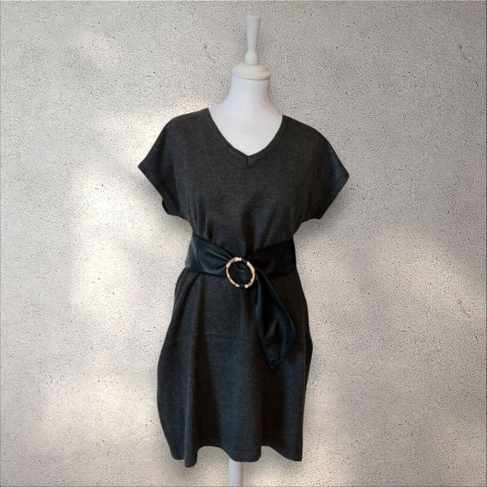Robe pull manches courtes grise taille unique - photo numéro 1