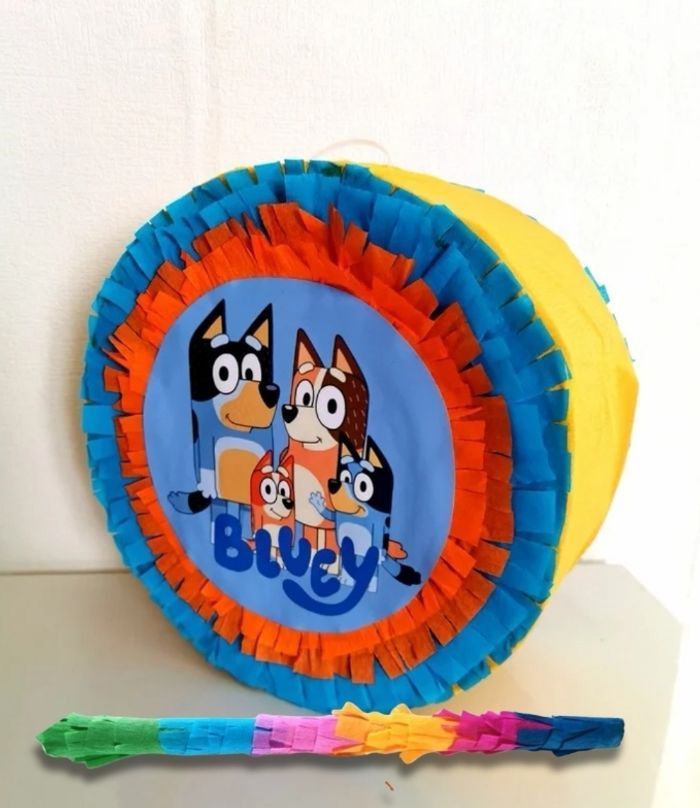 Pinata bluey Dimensions 25cm cm de diamètre. Elle contient une trappe pour la remplir et un crochet pour la suspendre. Envoi rapide et soigné. Pinata à casser : Pinata de 25cm x13cm sans bâton Prix, 11e Pinata de 25cm x13cm avec bâton, masque... Prix, 15e. Pinata de 30cm x13cm sans bâton Prix, 15e Pinata de 30cm x13cm avec bâton. Prix, 20e. Bâton en bois multicolore mesure 40cm Piñatas à ficelles : Environ 15 ficelles multicolore. La pinata ne se détruit pas. Vous pouvez la garder comme souvenir ou la réutiliser. Idéal pour les plus petits ou les petits espaces. Elle contient une trappe pour la remplir et un crochet pour la suspendre, plus une trappe plus grande pour les ficelles. Pinata de 25cm de diamètre x13cm avec ficelles. Prix, 15e. Pinata de 30cm de diamètre x 13cm avec ficelles. Prix, 20e. D'autres articles disponibles. Invitations à remplir Invitations à personnaliser. Cake topper /décoration gâteau personnalisé. #decorationfetebluey #decorationanniversairebluey #pinatabluey #pignatabluey #anniversairegarcon #cadeaudanniversairebebe #anniversaireenfant #anniversairebluey #fêtedanniversairebluey #pinata #pignata #fetebluey #bluey