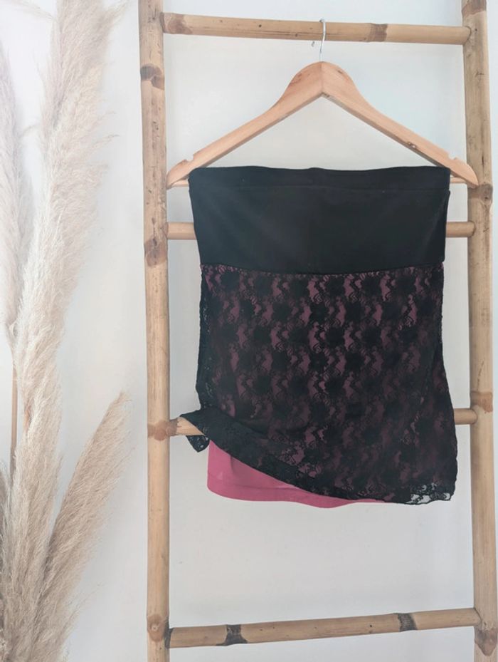 Haut bustier rose et noir effet dentelle - photo numéro 1