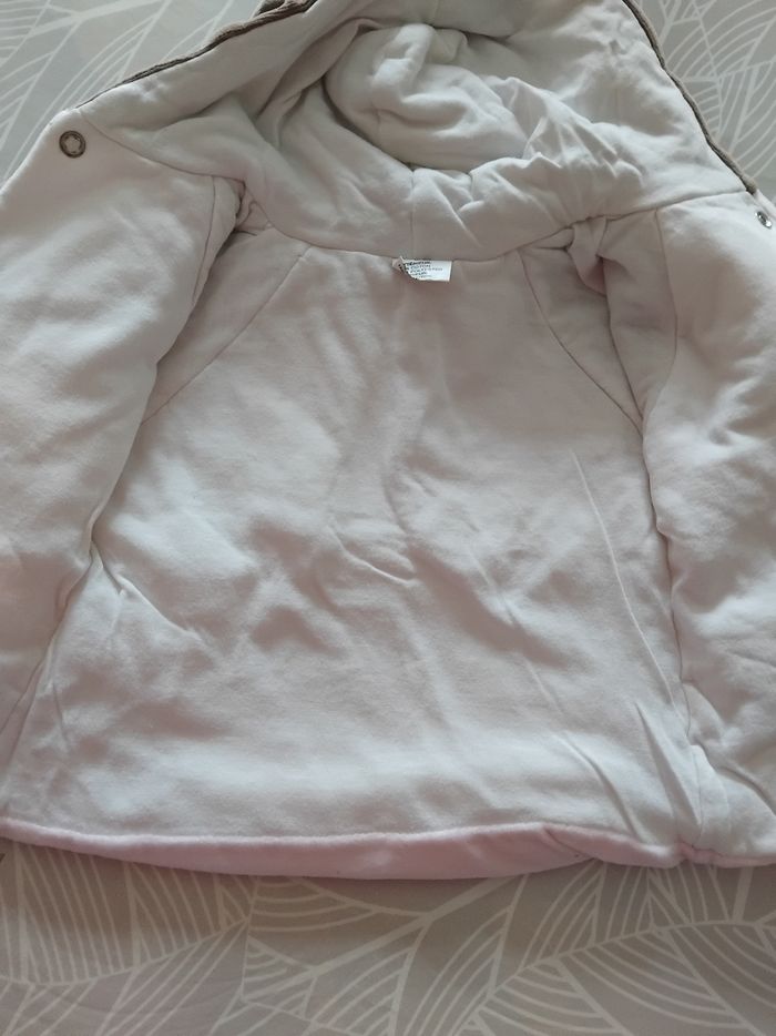 Ensemble comprenant un pantalon et un gilet à capuche. De couleur rose et marron. Vêtements très épais idéal pour l'hiver. #bébéfille6moisnade3033