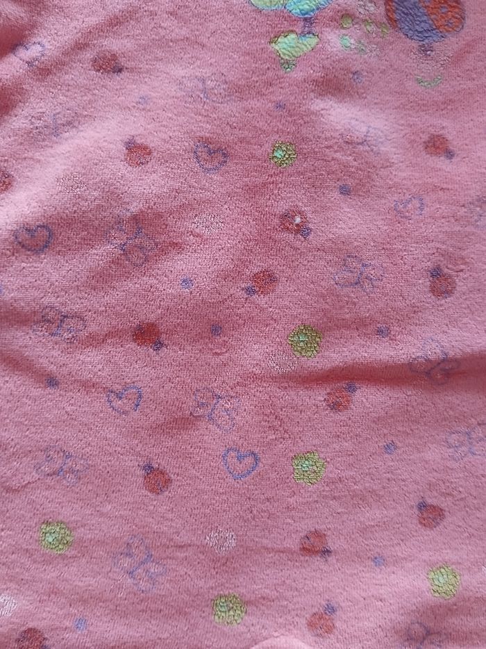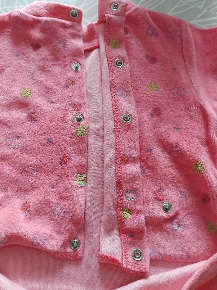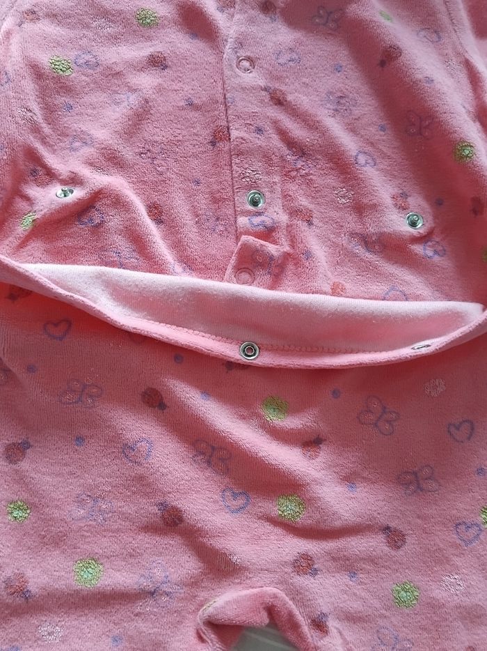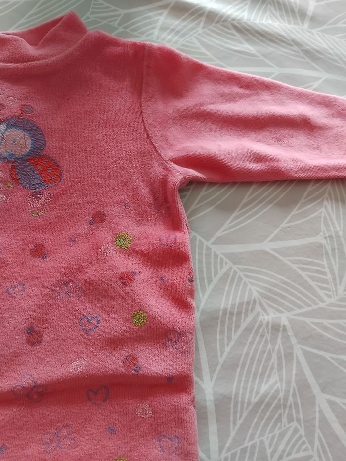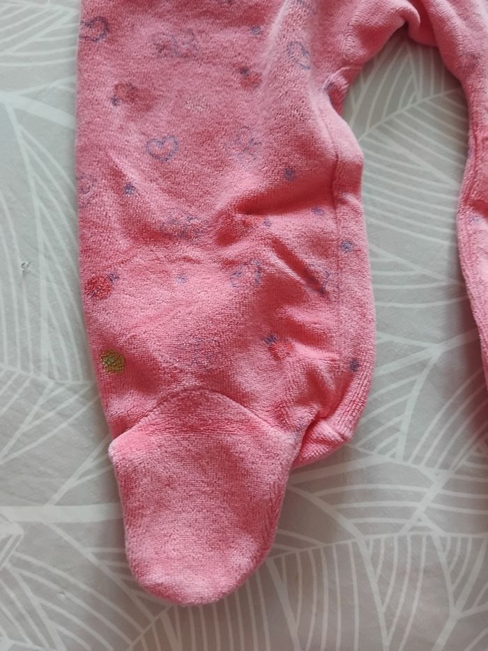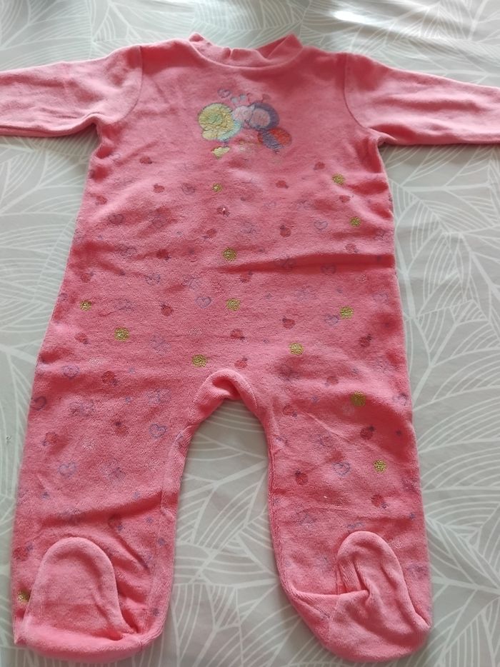 Pyjama rose motif coccinelle et papillon les dessins sont un peu défraîchi voir photos. #bébéfille6moisnade3033