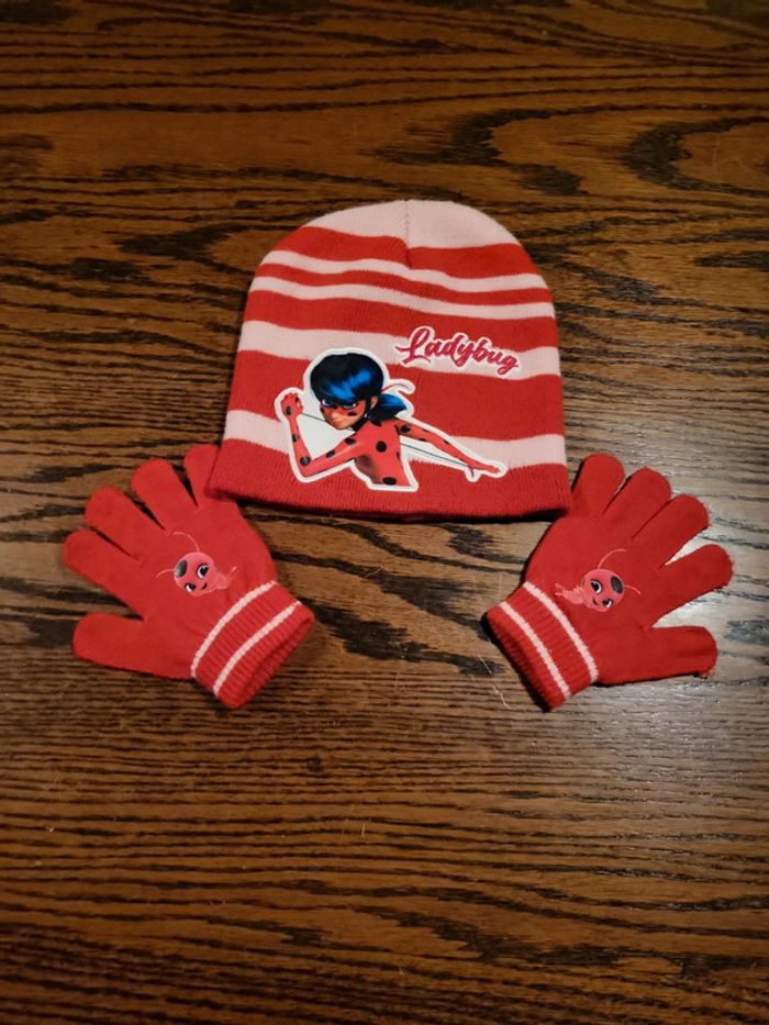 Lot bonnet / gants ladybug