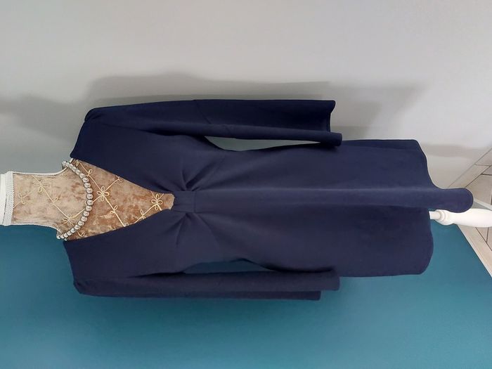 Robe évasée de la marque Lenny B. Très bon état. Indiqué Taille 2, conviendra à un 38, petit 40 (voir mesures plus bas). Coloris = bleu marine. Jolies manches longues évasées. Décolleté assez profond. Fermeture par zip dans le dos. Composition = 92% polyester, 8% élasthanne. Fabriqué en France. Mesures à plat = Largeur aux épaules = 35cm environ. Largeur aux aisselles = 45cm environ. Longueur = 85cm environ. N'hésitez pas à me contacter si vous avez des questions. Je vous répondrai dès que possible.