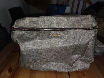 Sac en bon état . Manque un pression sur le rabat avant. Pas gênant pour l’utilisation car il y a des fermetures en dessous. Couleur : marron clair ou beige foncé.