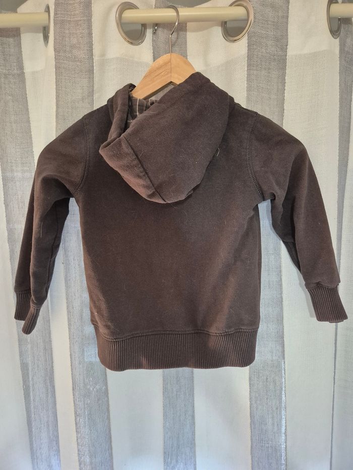 Sweat à capuche Kiabi 5 ans 61% coton 39% polyester Sweat légèrement pluché, et rèche du au lavage.