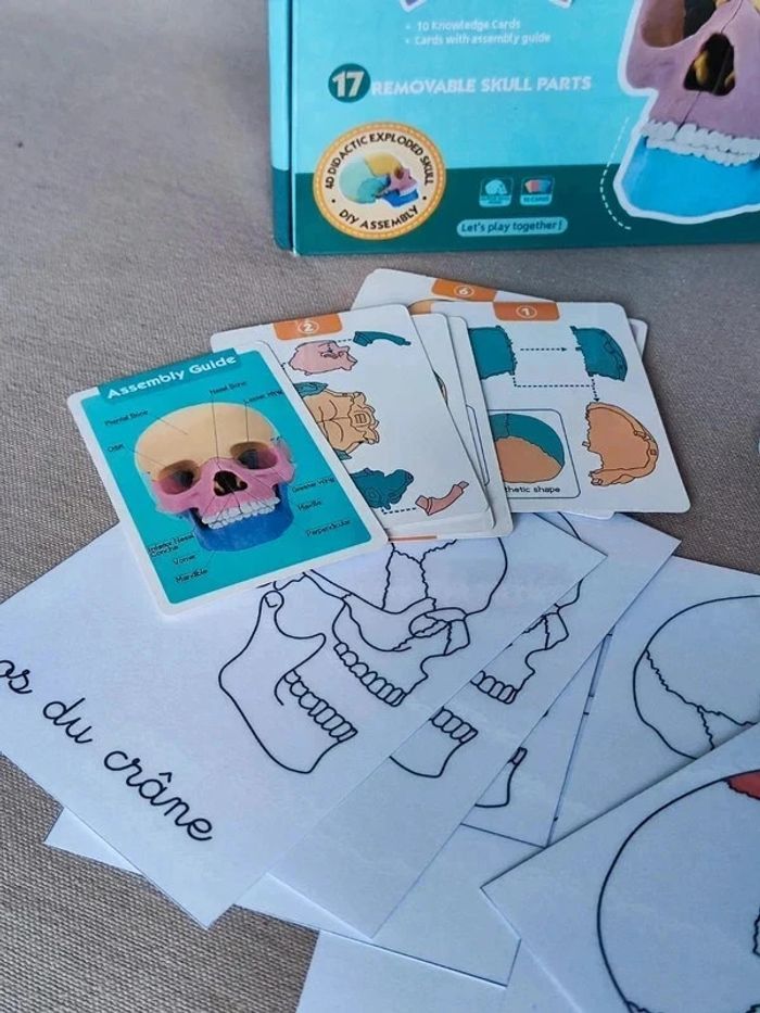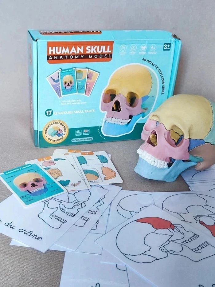 🧡 Compte Pro 🧡 ✨Kit du crâne humain avec mâchoire articulée ! 👉Le kit comprend: 📍Un crâne avec mâchoire articulée. 📍24 cartes de nomenclature du crâne. ( Taille : 9,5 x 13 cm ) 👉Papier 250G plastifié pour une bonne tenue ! 👉Neuf. 👉Pour trouver d'autres activités c'est par ici : 🔎#elisabethdesignCorpsHumain 🔎#elisabethdesignNomenclature 📫⏳ Envoi rapide et soigné le jour même de l'achat dans la mesure du possible! 🤝 Frais de port ajusté au plus bas. ❓Une question ou besoin d'un conseil, n'hésitez pas à me contacter❗ A très vite, Elisabeth 😊