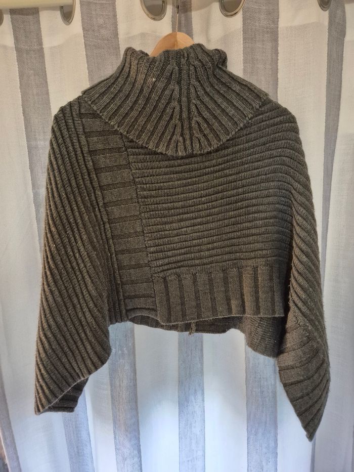 Poncho / cape à col roulé Gris Camaïeu. 100% Acrylique Très peu porté mais il y a des pluches