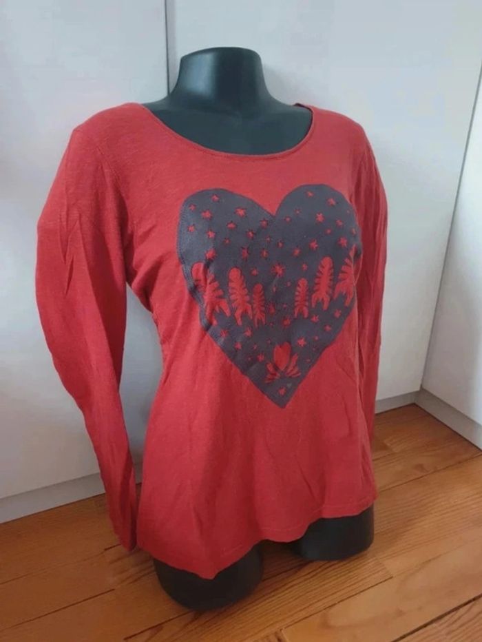 Tee shirt coeur couleur rouge rouille manches longues Noël hiver winter taille M 38
