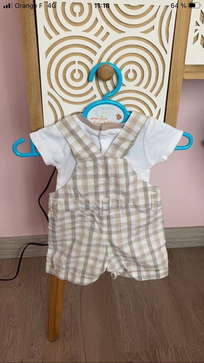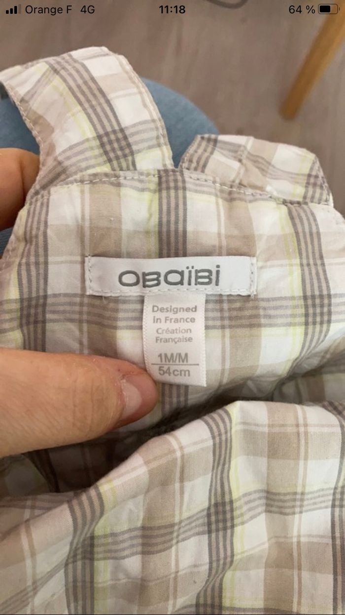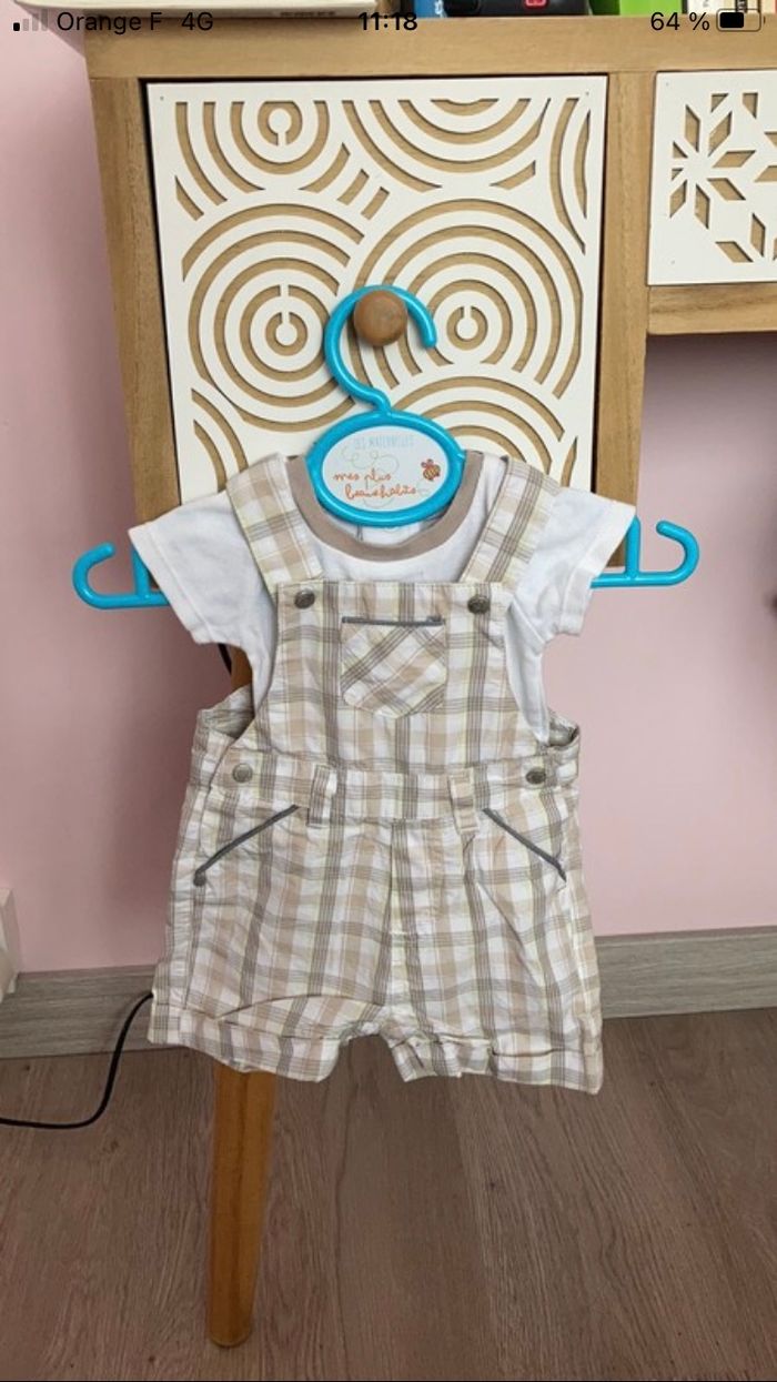 Salopette été + body de chez obaibi taille 1 moi Excellent état