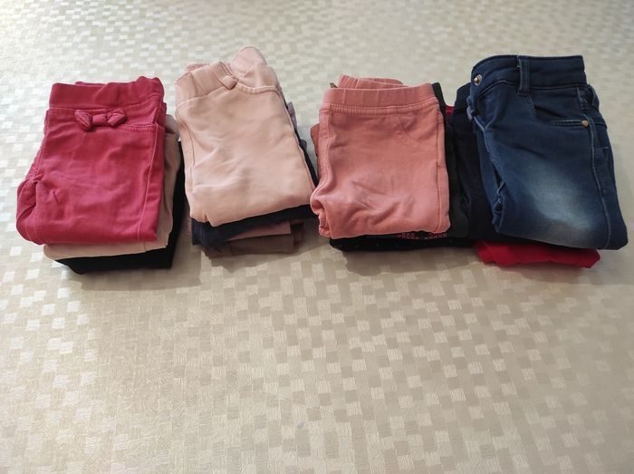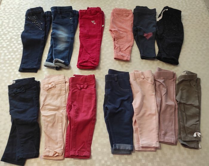 Lot vêtements fille 6 mois (plus de 35 pièces): - 13 pantalons (2 leggings, 3 jeans boutons pressions, 3 joggings, 5 jeggings) - 3 tee shirt manches courtes - 2 robes - 1 ensemble robe en jean/tunique à fleurs violettes - 1 combinaison marine - 1 tunique body - 1 sous pull noir - 4 tee shirt manches longues - 5 petits pulls (2 un peu délavés) - 4 gilets - 1 gilet sans manches tout doux Toutes marques : Gémo, Orchestra, Tape à l'oeil... Profitez il y a souvent des codes promos qui permettent des réductions de 20% à 30% 😊