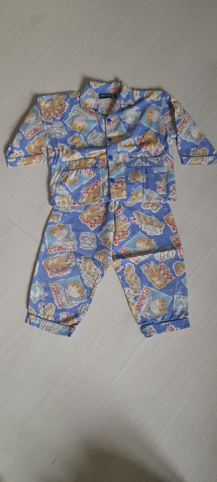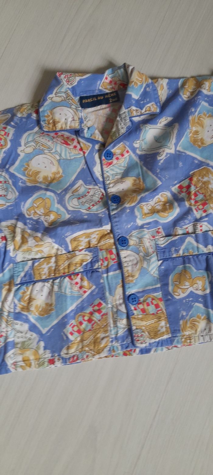 Pyjama T 2 ans Marque DU PAREIL AU MÊME Couleur bleu clair avec motif/ attache central boutons et 2 poches devant pour le haut Taille élastique pour le pantalon 100 % coton Très très bon état