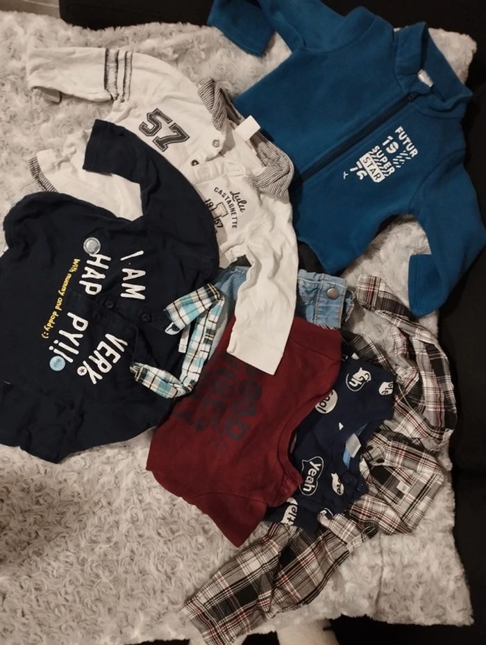 Tout en tres bon état, différentes marques, lulu castagnette, decathlon, Gémo, Kiabi. Un ensemble survêtement gilet et jogging Un jean Une chemise 2 pulls 2 t-shirts manches longues #alm1208_garçon12mois