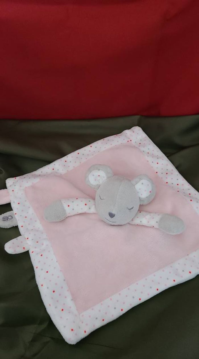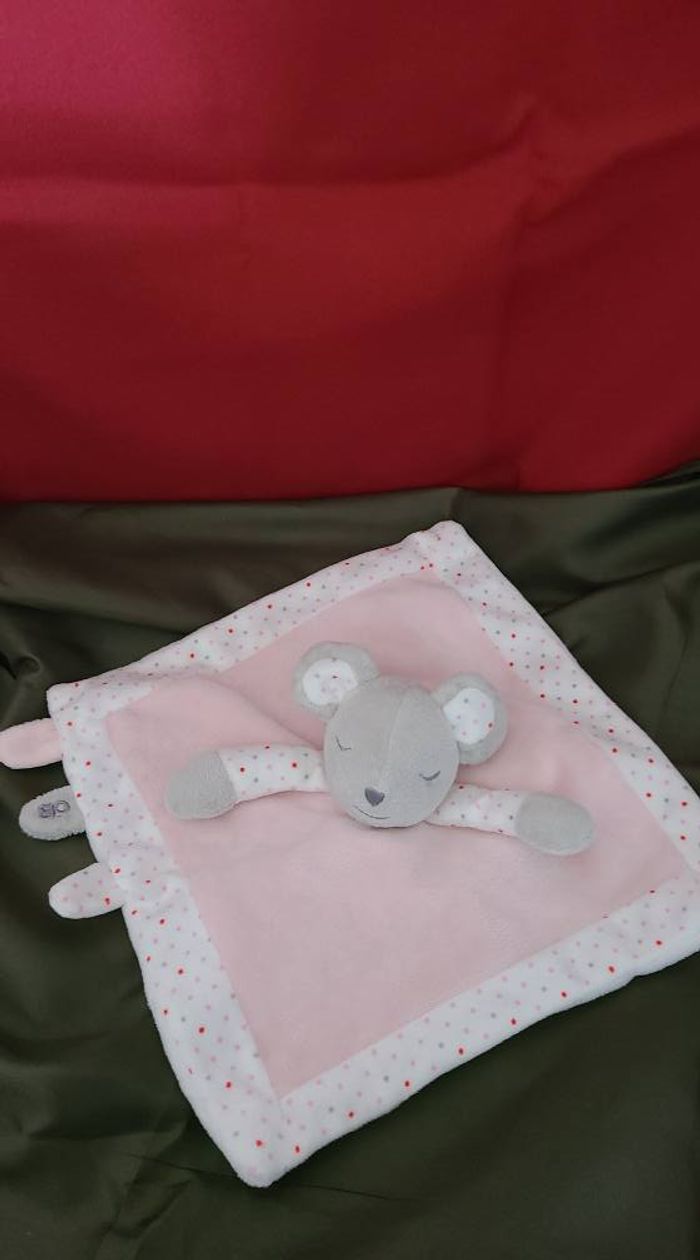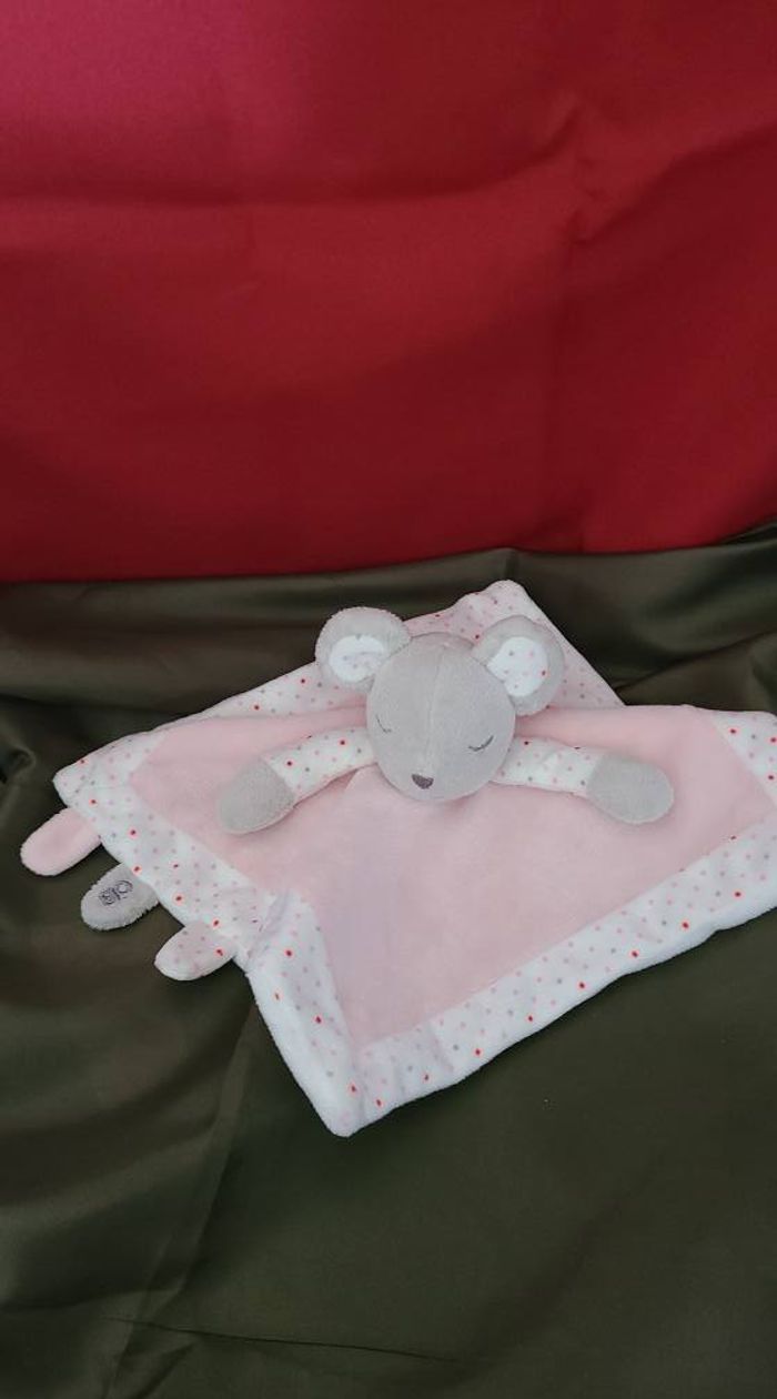 Doudou plat souris OBAIBI dormeuse rose et gris à pois 112
