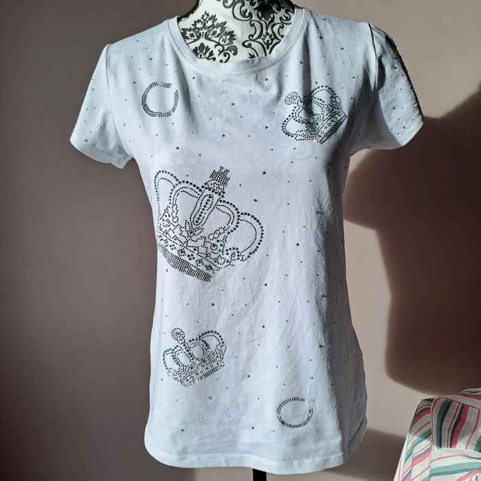Tee-shirt #je-ne-sais-quoi Quelques strass en moins mais ne se voit pas beaucoup Voir photo #deborahdubois1taille38 Lien pour d'autres articles de la même taille