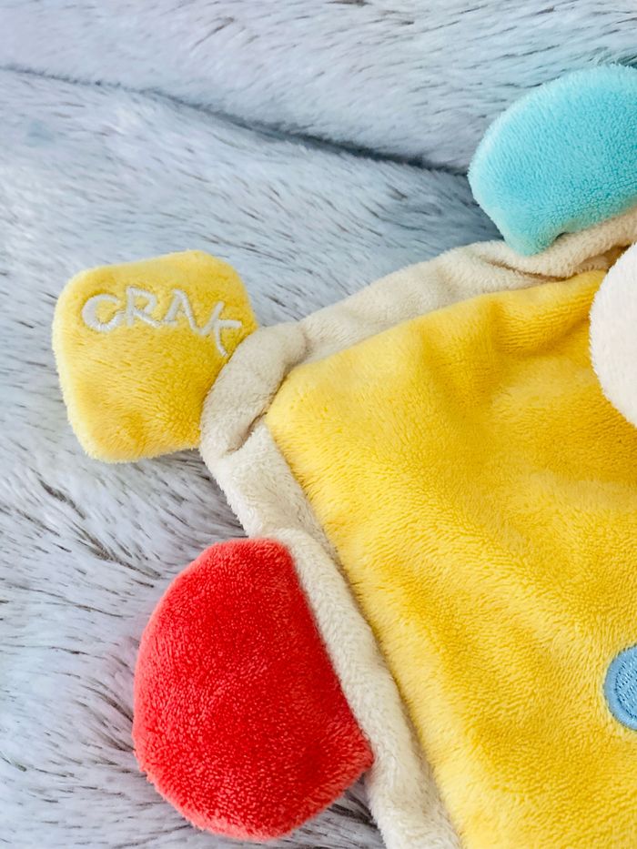 Dimensions : Voir dernière photo Toute petite tache sous la tête du doudou Certains embouts du doudou font le bruit du papier qu’on froisse Très bon état ✅ Envoi soigné 🎁 Locker Mondial Relay à proximité 📫