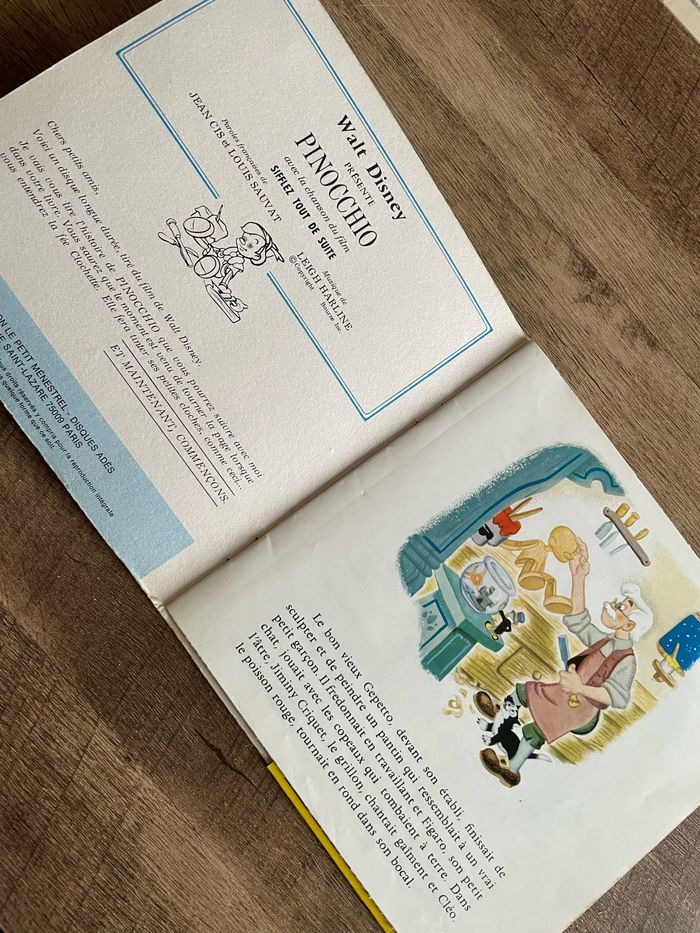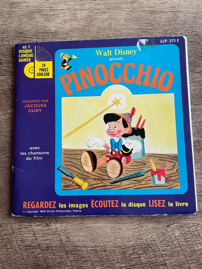Livre disque le petit ménestrel Pinocchio Walt Disney Vinyle 45 tours longue durée testé Bon état général 1968 Réduction automatique sur les lots