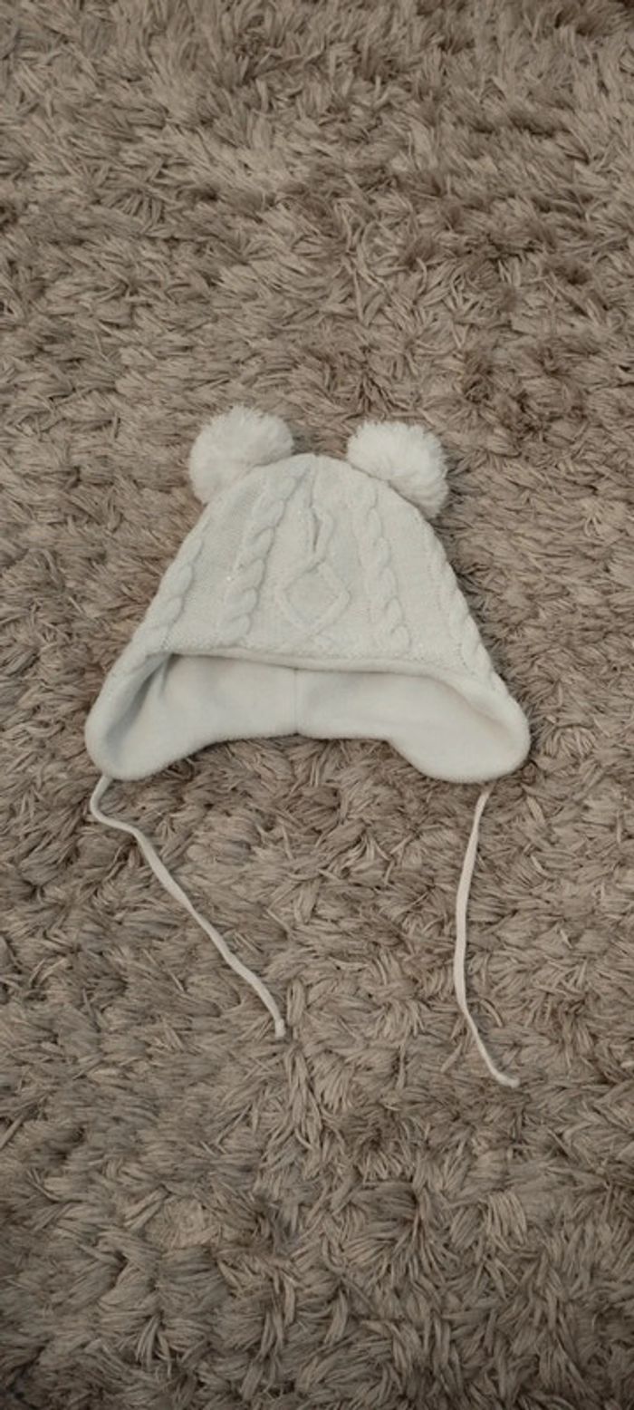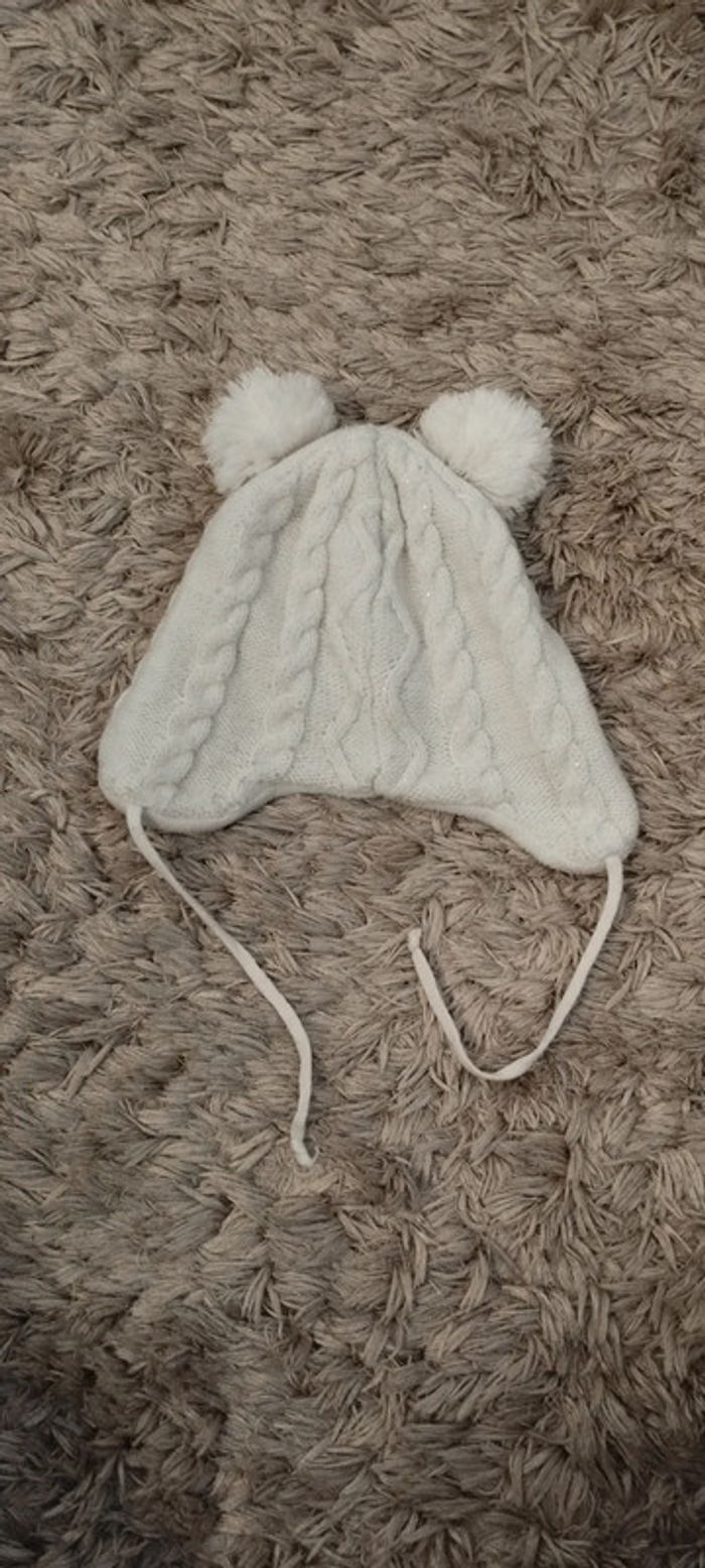 Bonnet blanc à paillettes en très bon état. Avec liens pour l'attacher et deux pompons trop mignons. #videchambresaccessoiresfilles