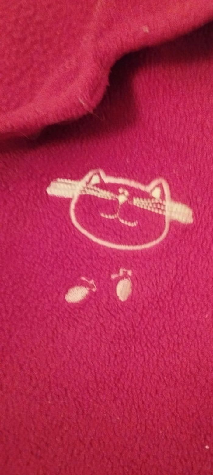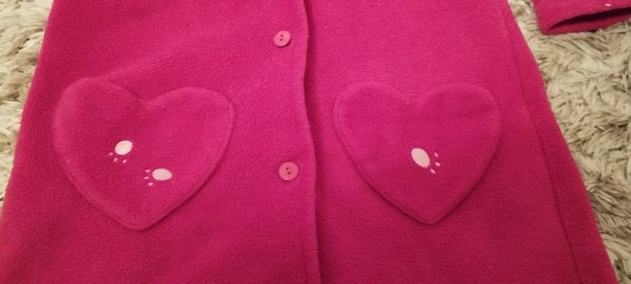 En parfait état et très chaude. Se ferme par boutons pour garder l'enfant bien au chaud. Poches en forme de coeurs et motifs chat sur le devant. #videchambres2ansfilles