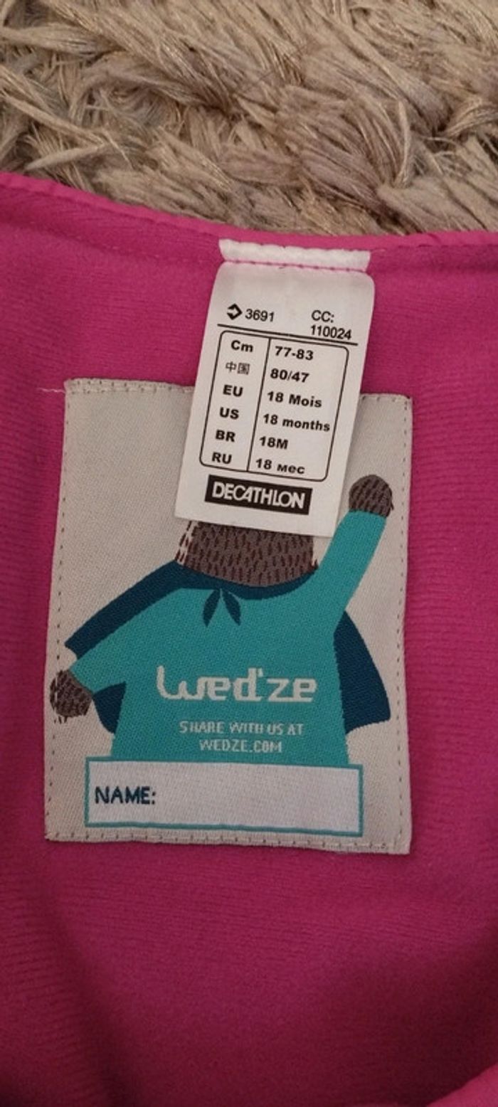 Salopette pour sport d'hiver très pratique car elle s'ouvre entièrement sur le côté pour pouvoir l'enfiler en un temps record. Étanche et très chaude. Portée une seule journée elle est donc comme neuve. Achetée 20€ à Decathlon l'hiver dernier. #videchambres18moisfilles