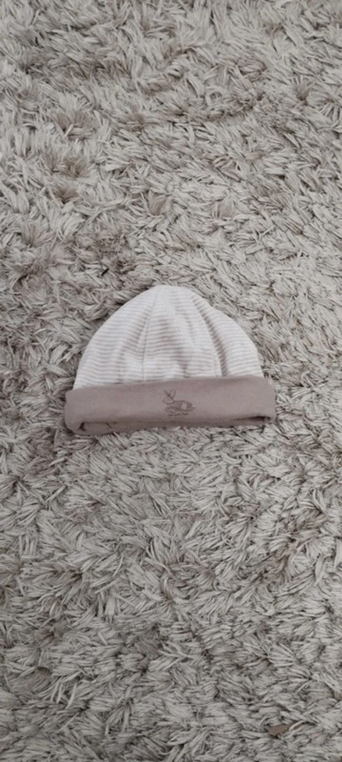 En très bon état car très peu porté. Petit bonnet rayé, décoré d'un lapin. #videchambresaccessoiresgarçons