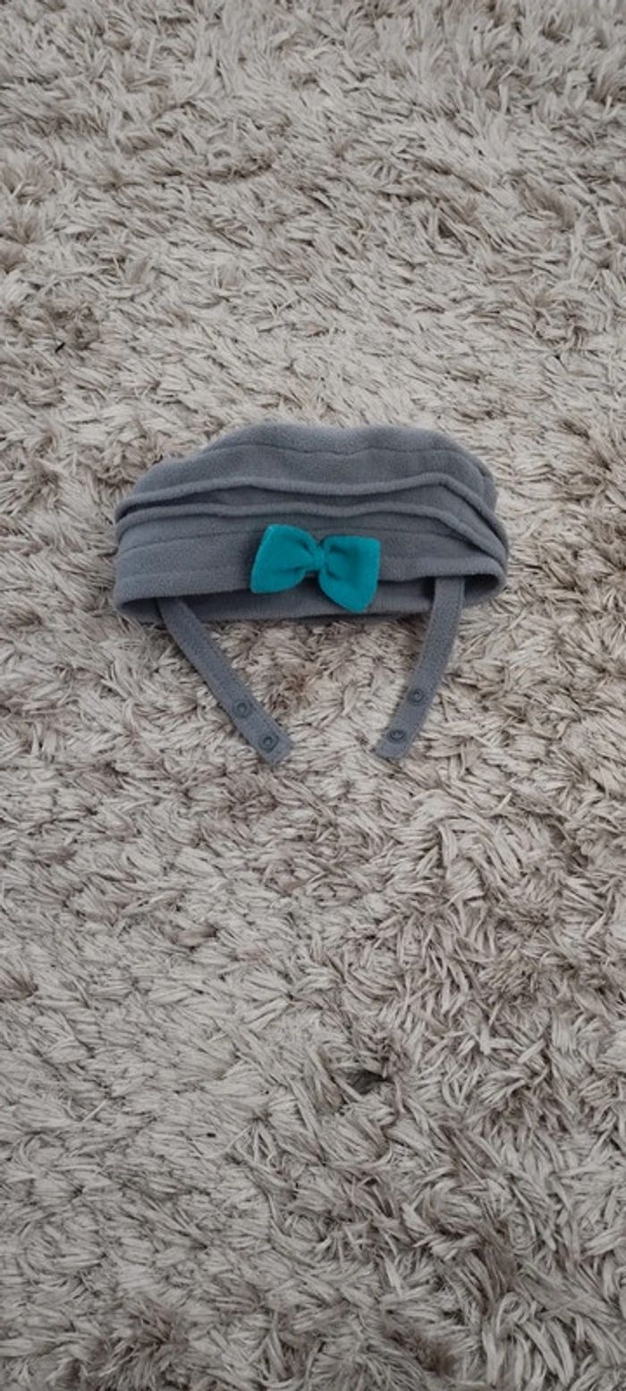 Chapeau en velours (style béret) en excellent état. Avec un joli noeud et des liens à pressions pour l'attacher. #videchambresaccessoiresfilles