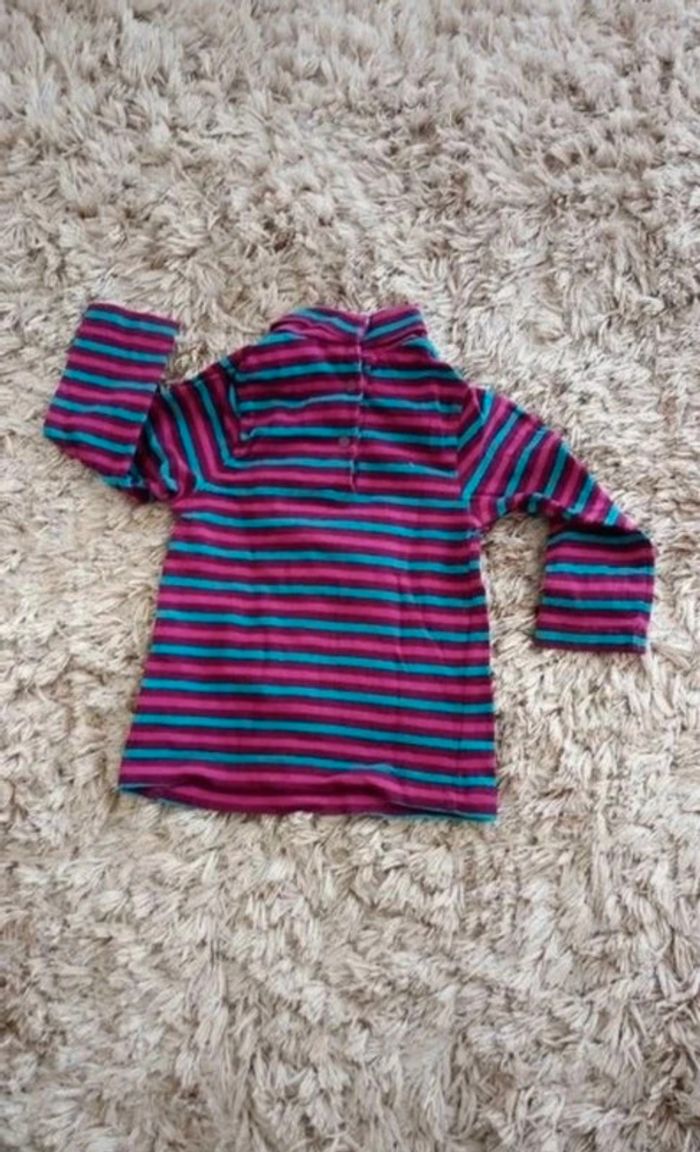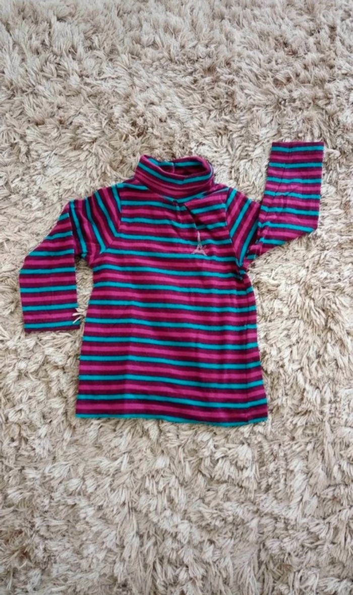 Un tee shirt rayé bleu rose et prune avec une tour Eiffel devant de marque Orchestra et un rouge avec une corde à sauter qui forme un coeur de marque dpam (du pareil au même). Ils sont en très bon état et peuvent être vendu séparément. #videchambres12moisfilles