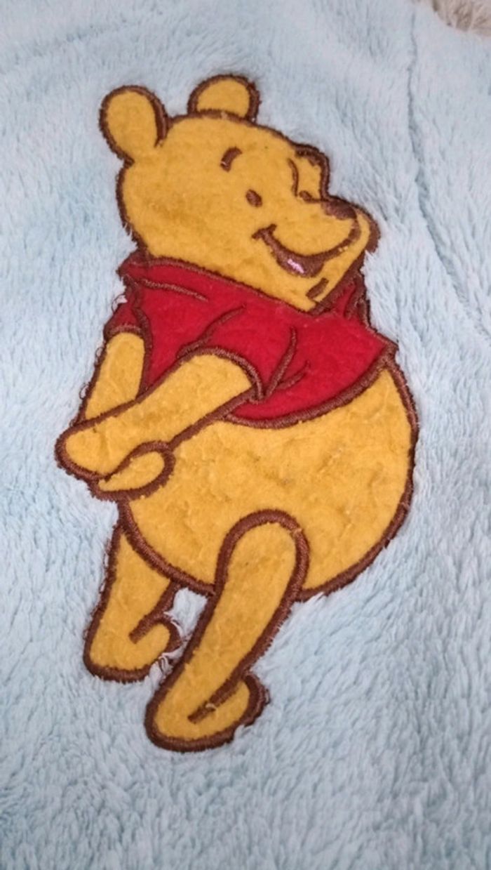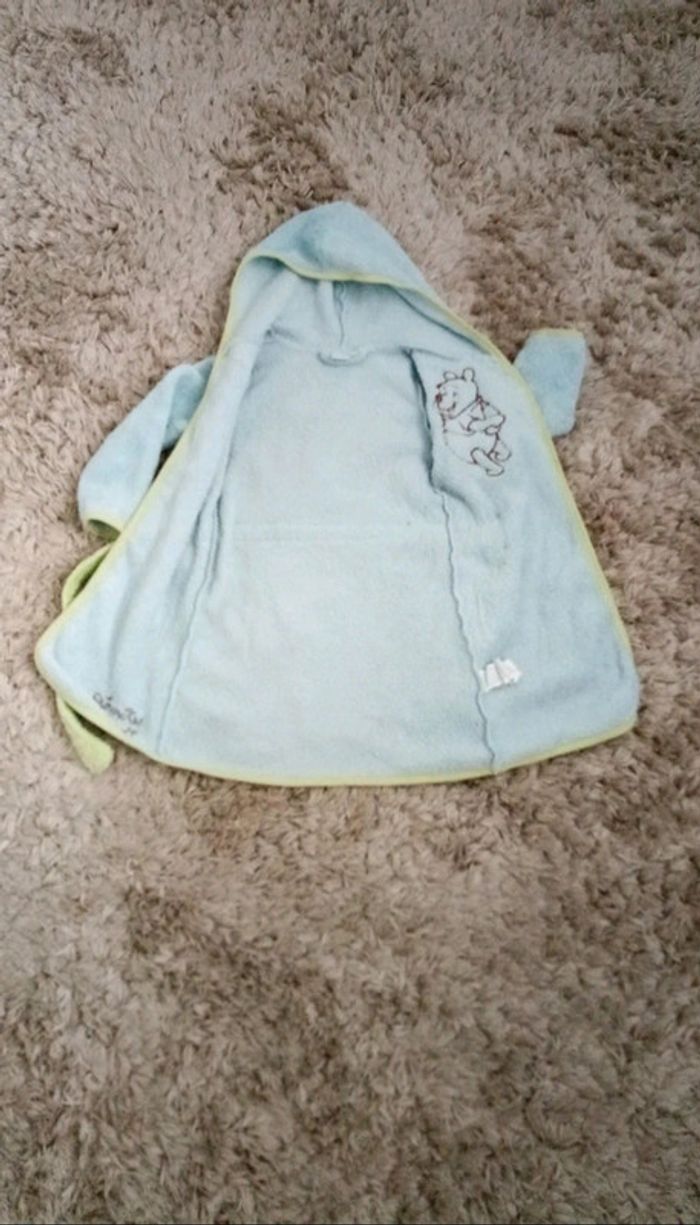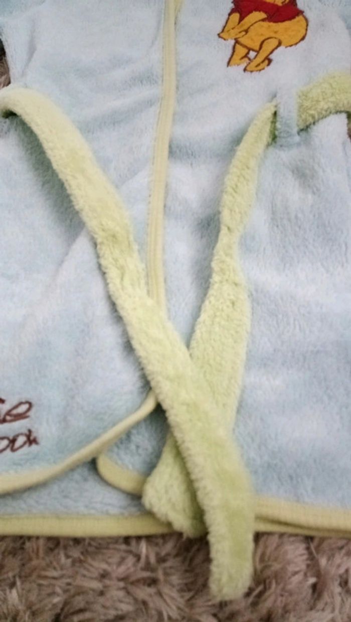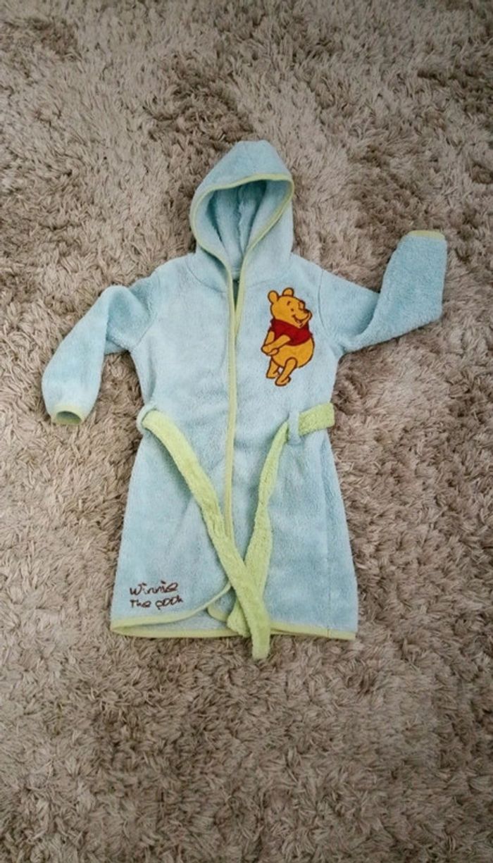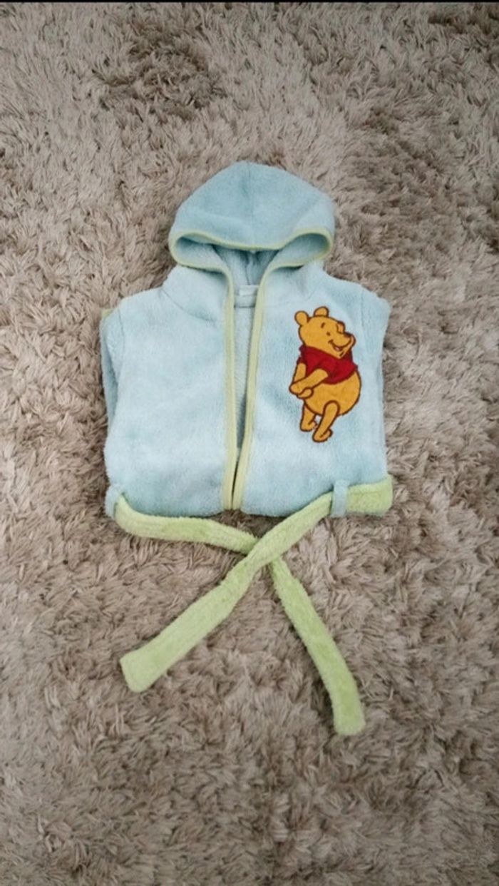 Robe de chambre en velours tout doux avec ceinture en parfait état. Seul défaut notable le dessin de Winnie l'ourson est légèrement bouloché (voir photos). Taille 86 cm à 92 cm. #videchambres18moisgarçons #videchambres2ansgarçons #videchambres3ansgarçons