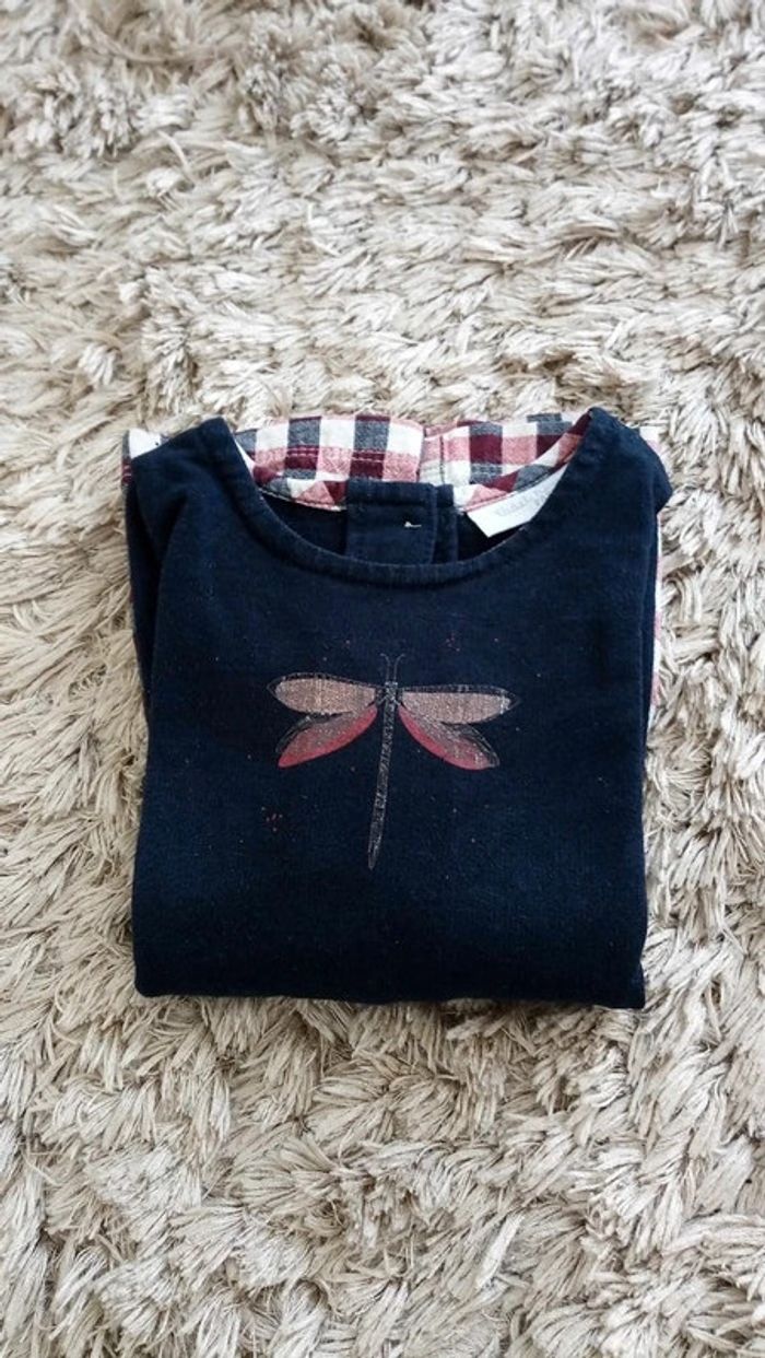 Tee shirt manches longues assez long en très bon état et de très bonne qualité. Comme neuf car peu porté. Avec une libellule devant. Idéal pour une tenue de fête par exemple. #videchambres12moisfilles