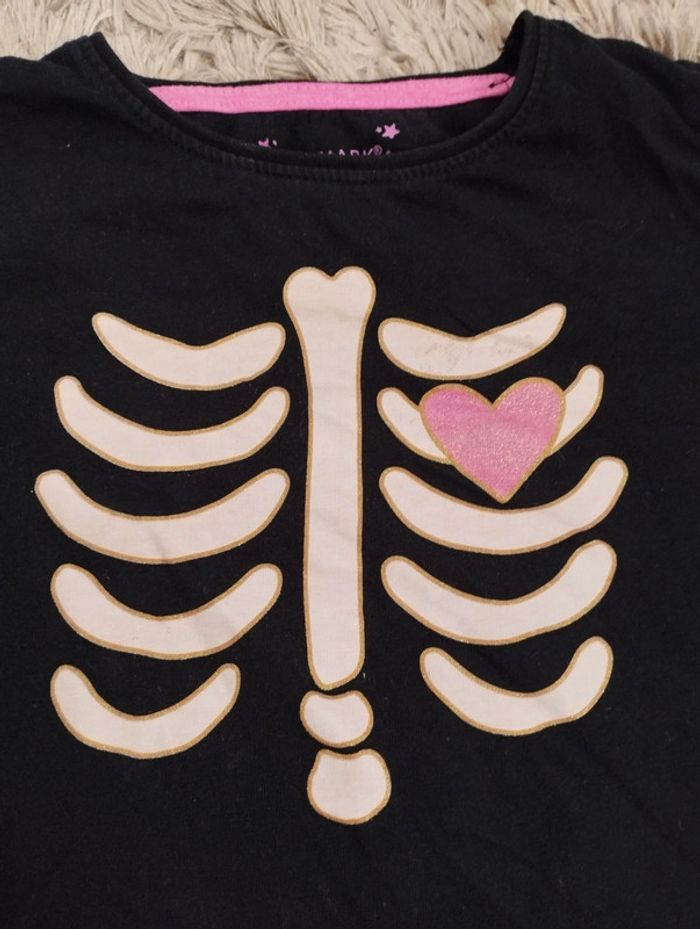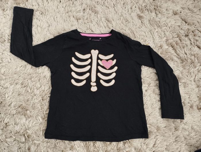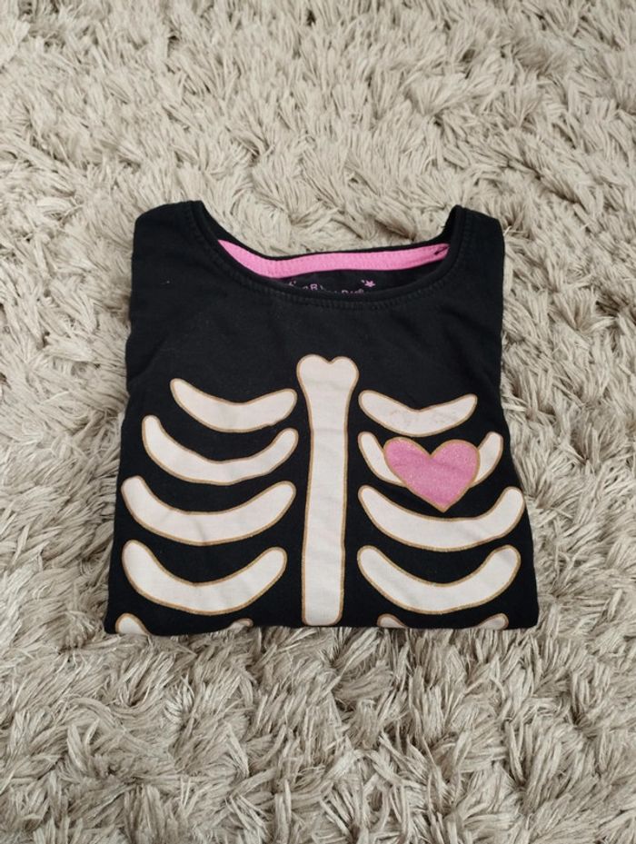 Haut manches longues en très bon état idéal pour Halloween. Motif squelette avec les os et coeur à paillettes. Envoi très rapide. Taille 5-6 ans. #videchambres5ansfilles #videchambres6ansfilles