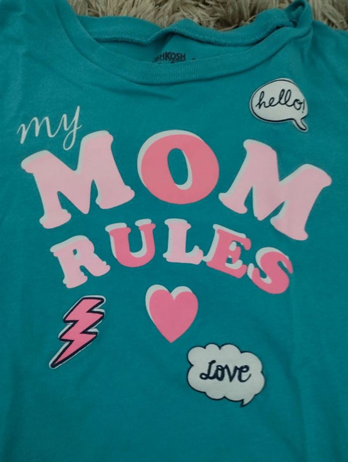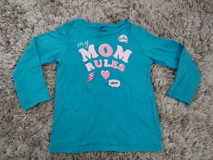 Tee shirt manches longues en parfait état. Message "mom rules". #videchambres5ansfilles