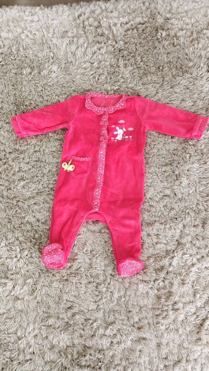 Porté seulement 2 ou 3 fois il est comme neuf et de très bonne qualité. Pratique car il s'ouvre sur le devant. Pyjama en velours tout doux. #videchambres6moisfilles