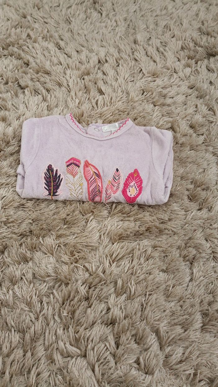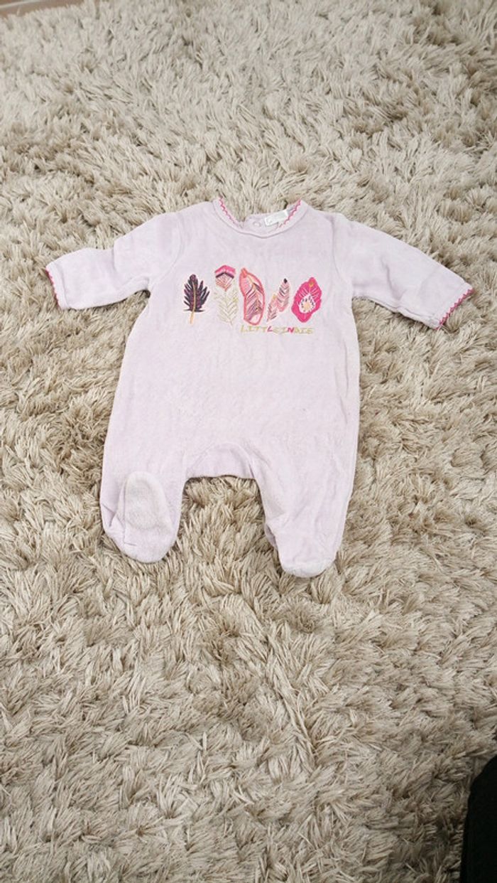 Pyjama en velours en parfait état tout doux. Motif plumes. #videchambres1moisfilles