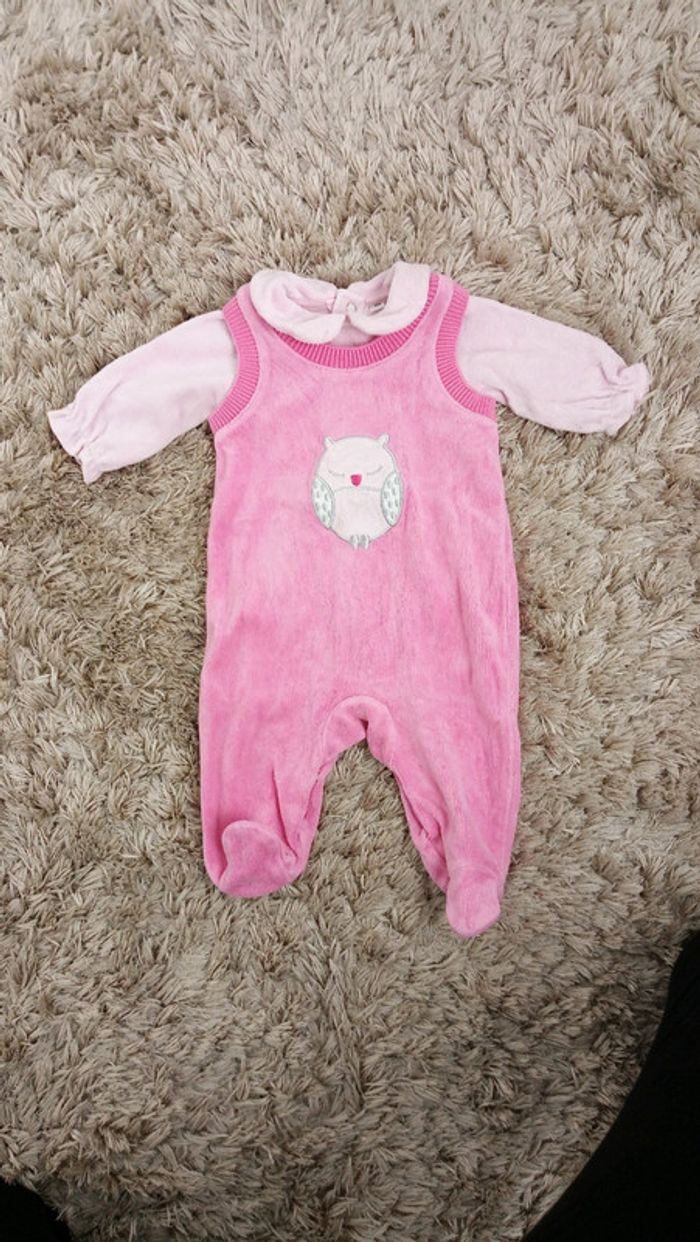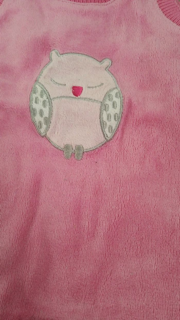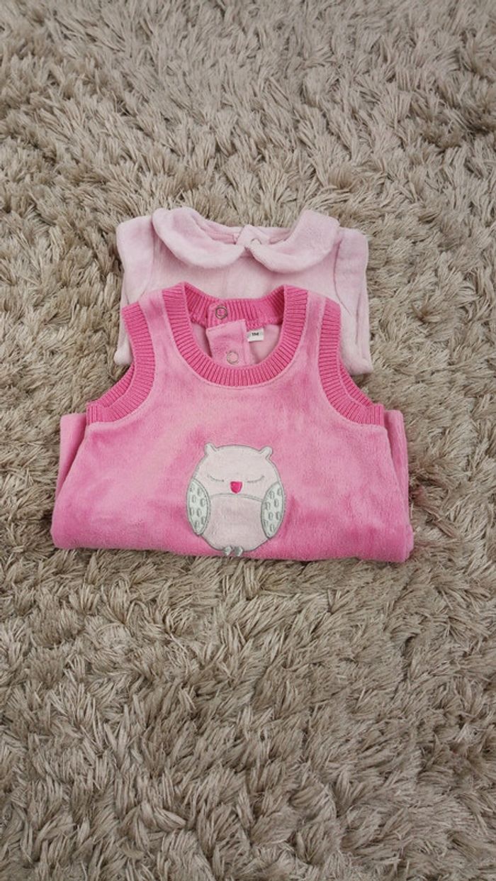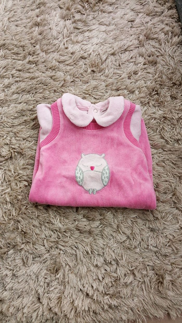 Combinaison en velours avec pieds et motif chouette assorti d'un pull en velours avec col claudine. Tout doux, chaud et confortable. Le tout en parfait état car très peu porté. #videchambres1moisfilles