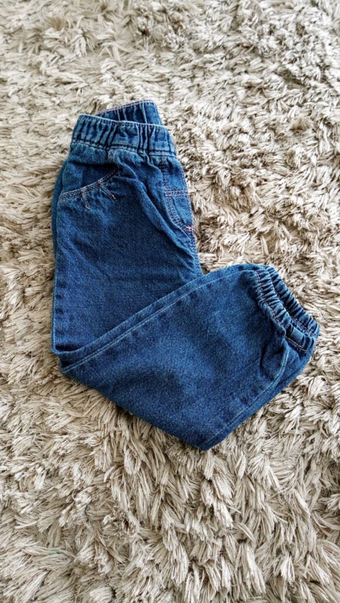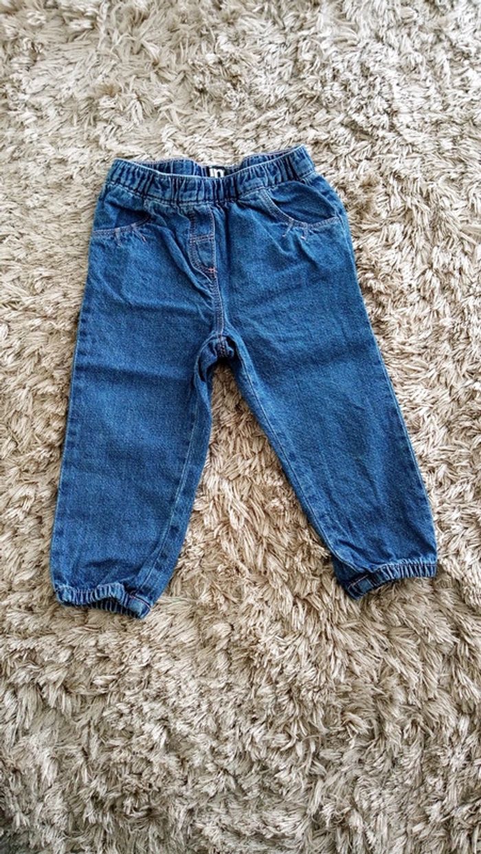 Jean léger avec coutures roses en très bon état. Élastiques à la taille et aux chevilles. #videchambres18moisfilles